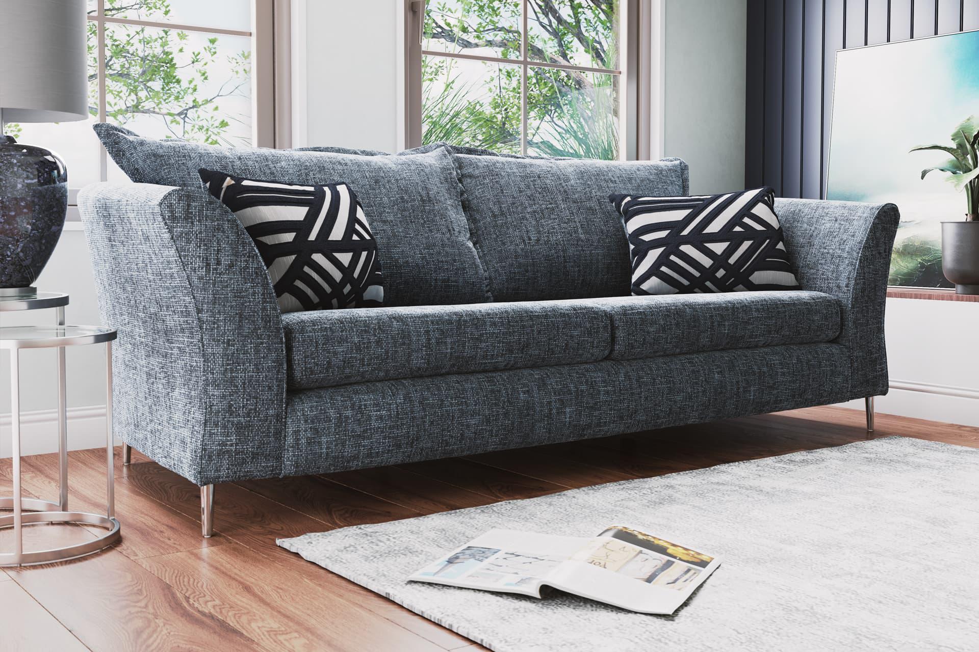 Elegant and luxurious our Opulent sofa will add a touch of glamour and a lot of comfort to your living room. Expertly crafted from rich luxurious chenille fabric this sofa is available in a curated selection of shades from highland green to graphite and denim blue. Each eye-catching fabric shade comes with a set of matching scatter cushions included for added style and comfort.Designed with a curvaceous shape the Opulent will be the perfect on-trend addition to your home. Sleek and modern the silhouette flows from the carefully sculpted arms through to the stunning back cushions accented with deep channelling detail for a high end look and feel. Finished with high-set brushed metal feet raising the sofa off the ground for a contemporary look.Both the seats and the back cushions on the Opulent are filled with resilient foam wrapped in soft dacron fibre offering the perfect balance of comfort and support as you sit back and unwind. Serpentine springs aligned with silent wire support both the seat and back cushions distributing weight evenly across the sofa. Feather-filled scatter cushions complete the cosy feel moulding to your shape as well as allowing you to customise the look and comfort of the sofa.Create a stylish and relaxing haven at home with a choice of sofa sizes chairs and footstools available in the range. The Opulent is exclusively designed expertly handcrafted and guaranteed for 20 years.Sofology - Feel at home on a sofa you love.
