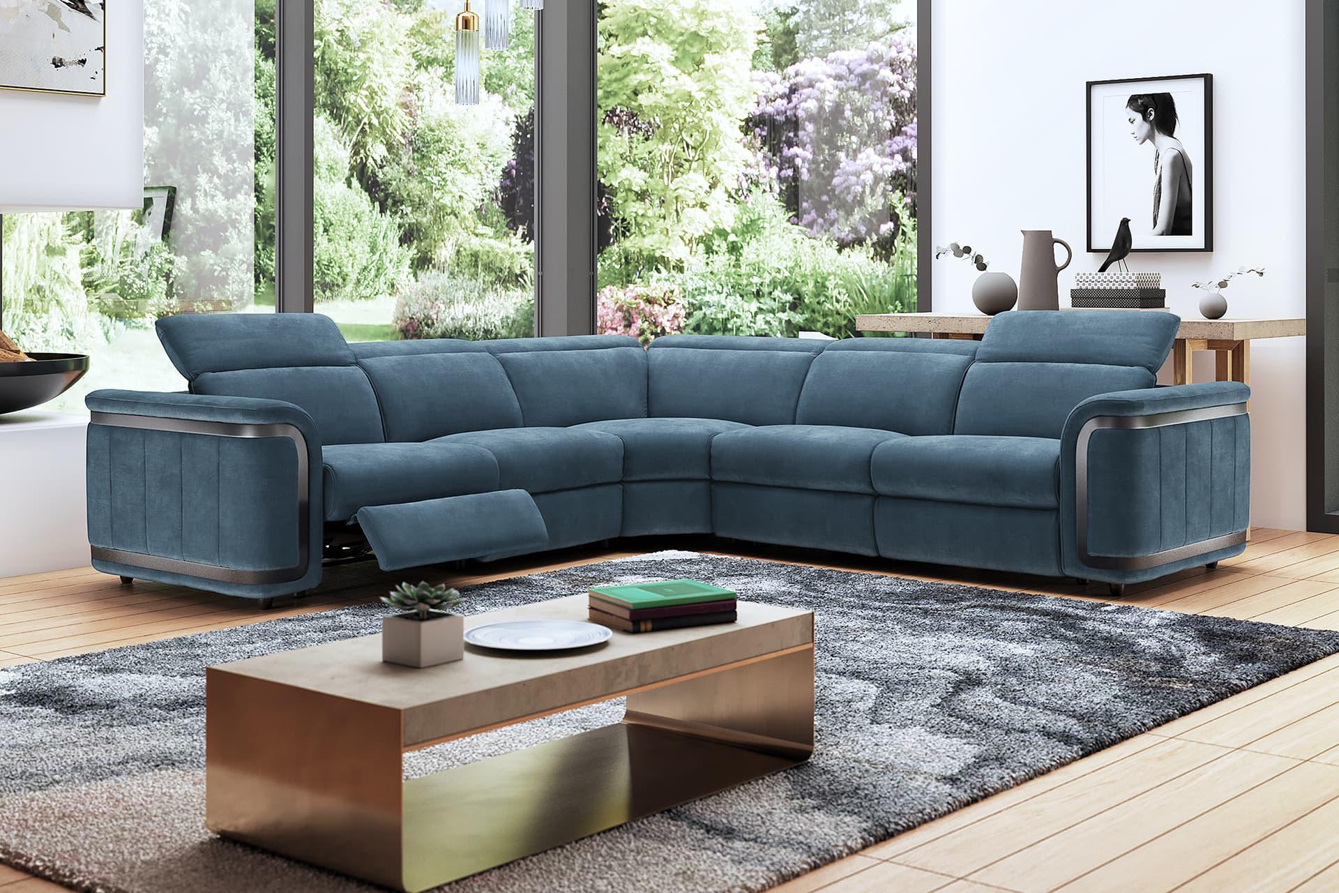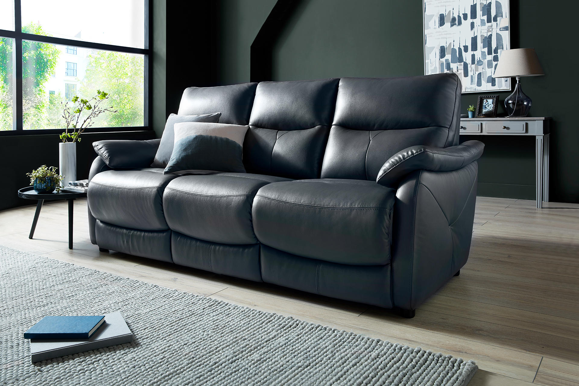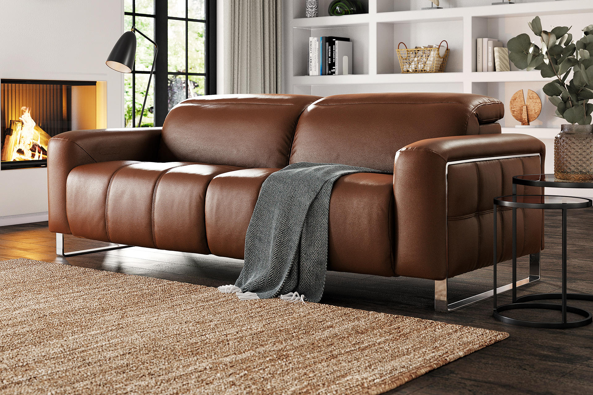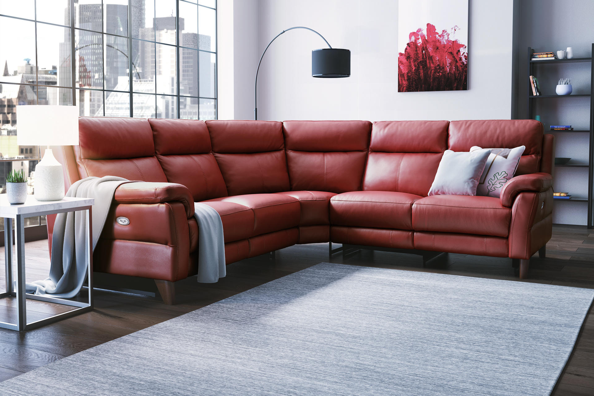 Super contemporary our Dakota sofa is designed to offer amazing style and sumptuous comfort with power recliner options available in the range. Expertly handcrafted from a choice of warm supple leather durable woven mix or luxurious hardwearing Luxe Plus fabric this range offers something for everyone - available in a range of shades from mahogany to silver.Enjoy amazing relaxation on seats featuring a sprung core topped with foam and wrapped in super soft Dacron fibre offer the perfect balance of comfort and support.. The back cushions are filled with foam topped with thick fibre and a Dacron wrap for an extra luxurious feel. Serpentine springs aligned with silent wire support the seat cushions and distribute weight evenly across the sofa for an amazing sit.Designed with a sleek modern silhouette the Dakota features sloping angled arms finished with an eye-catching metallic trim available in a black metal or chrome finish. The arms and back cushions are accented with discreet piping detail around the edges and high-set metal feet complete the look while also supporting the base and frame of the sofa.Available as a static or power recliner sofa opt for the power recliner and relax at an angle that suits you from upright to almost horizontal. The power headrests let you adjust your viewing angle to ensure amazing comfort as you relax in front of the TV and the USB ports allow you to charge your devices as you unwind.Create your own relaxation haven with a choice of sofa sizes corner configurations chaise chairs and footstools available in the range. The Dakota is exclusively designed expertly handcrafted and guaranteed for 20 years.Sofology - Feel at home on a sofa you love.