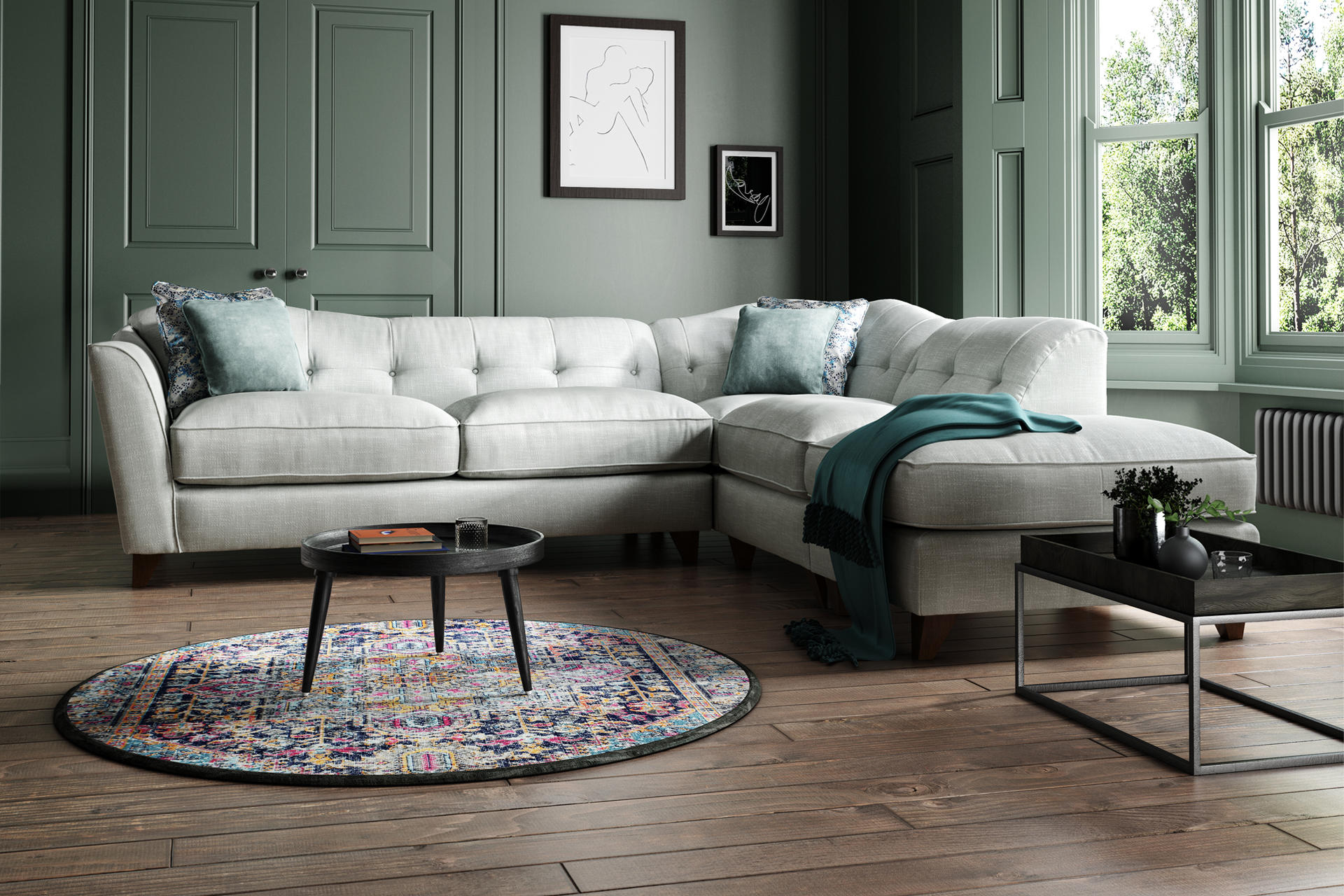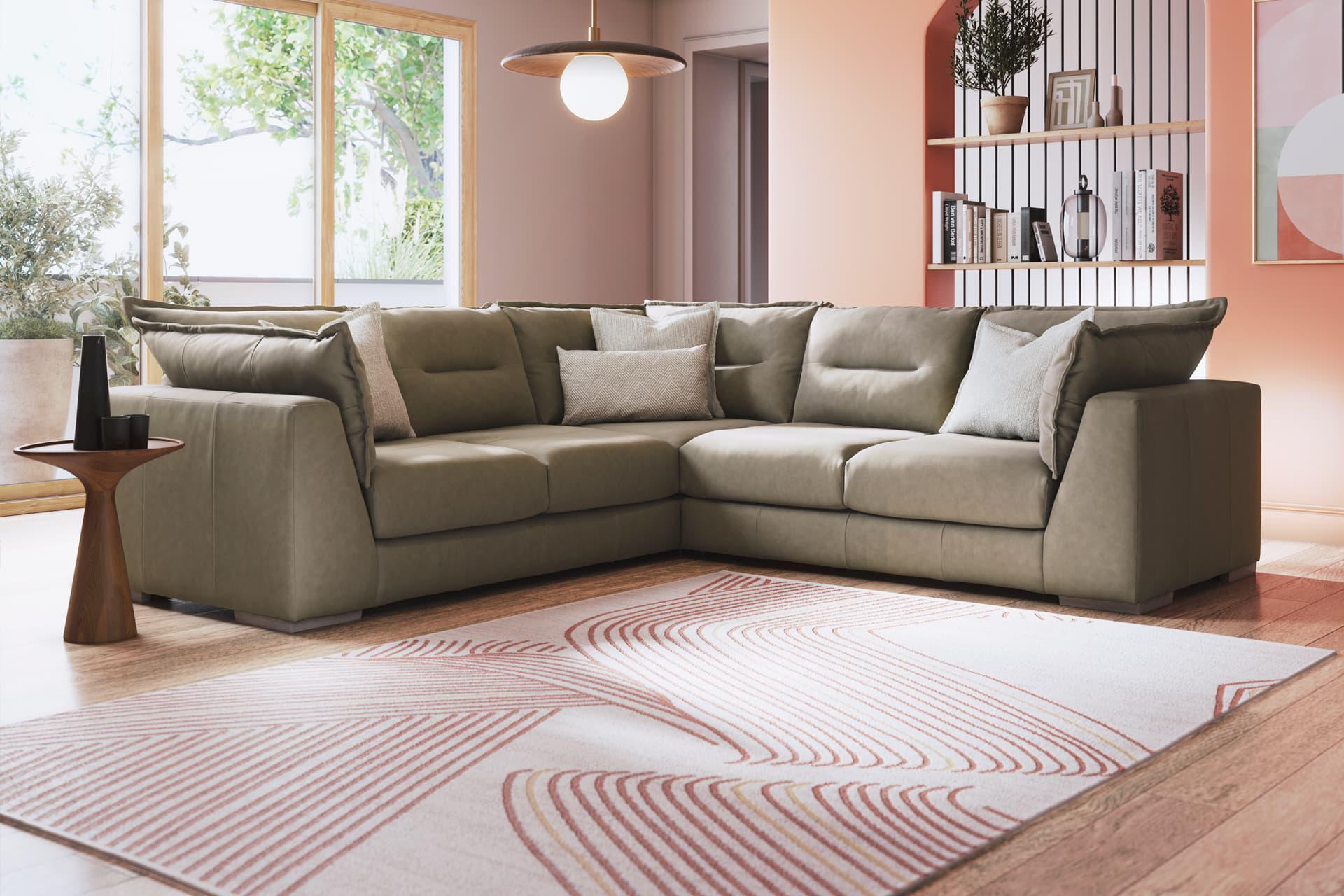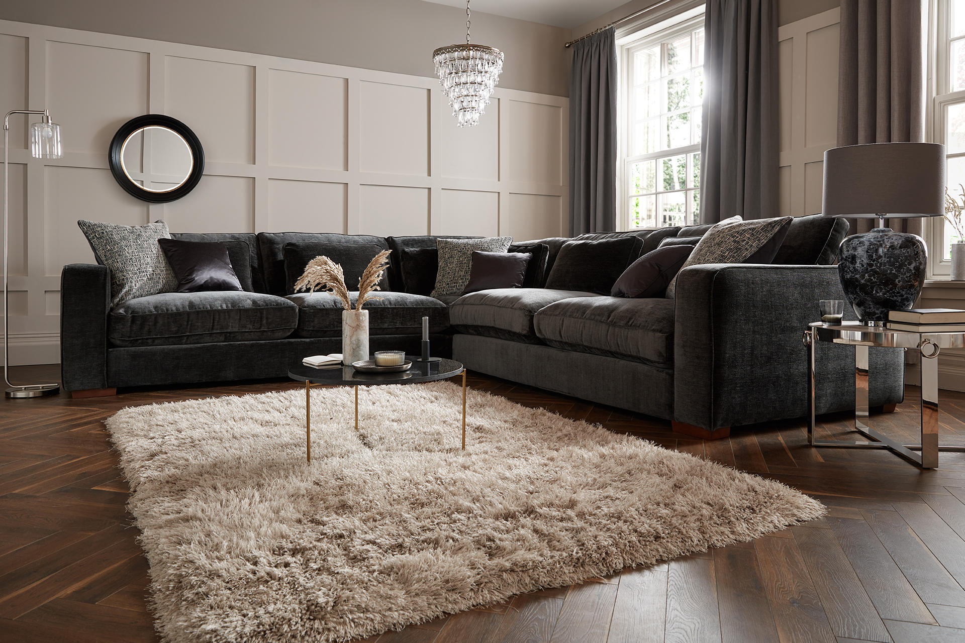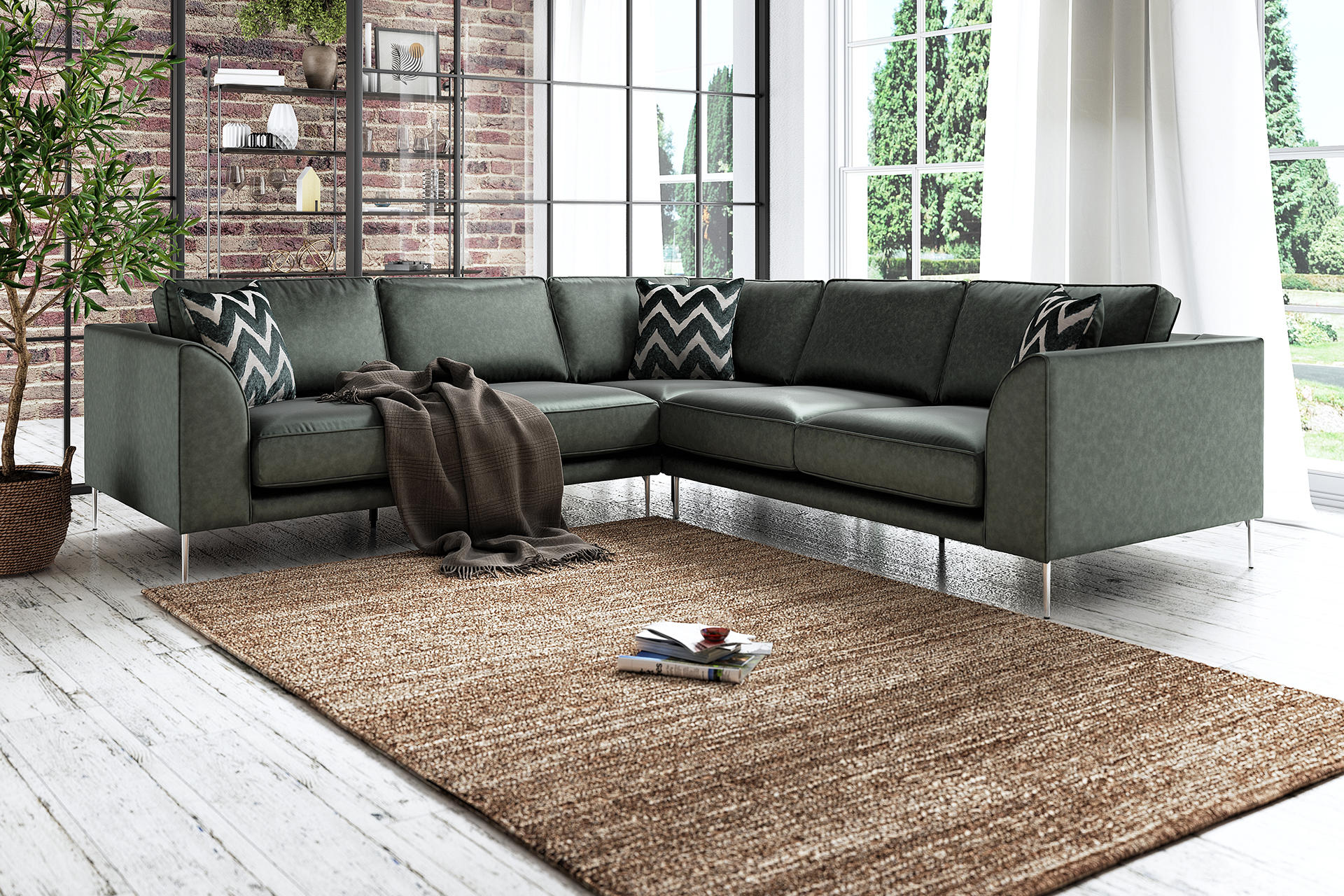 Sleek and comfy, the Piazza range is a perfect choice for those who love the finer things in life. Crafted from a soft, tactile chenille fabric in a choice of gorgeous shades, from moss green to silver, this sofa invites you to settle down and relax. Effortlessly minimal, the Piazza is ready and waiting to help you unwind after a busy day. Designed with a modern silhouette, the Piazza is a contemporary take on a classic sofa shape. Available as a curved corner sofa, this range has subtle yet intricate inlaid arm detailing, piped edges and scatter back cushions finished with an oxford border. Sitting on discreet wooden feet, available in a choice of walnut or grey ash shades, the Piazza sits low to the floor for a cosy, contemporary feel. Curl up and enjoy the perfect balance of comfort and support on seats filled with foam wrapped in soft Dacron fibre. Available with cosy, fibre filled full back or luxurious, feather filled pillow back cushions, you can choose your ideal comfort on the Piazza. Solid steel serpentine springs, aligned with silent wire, sit under the seat cushions, adding extra support and making it easier to care for your sofa. Create your own relaxation haven, with a choice of sofa sizes, corner configurations, chair and footstools in the range. Scatter cushions are included in the range, with a choice of patterned or plain all-over fabrics available, depending on your sofa shade. The Piazza is exclusively designed, expertly handcrafted and comes with a 20 year structural guarantee included. Sofology - Feel at home on a sofa you love