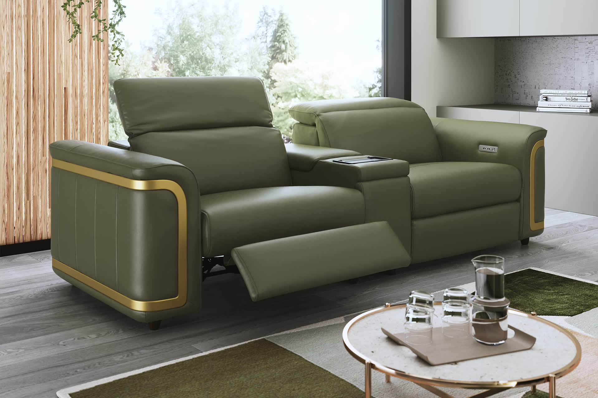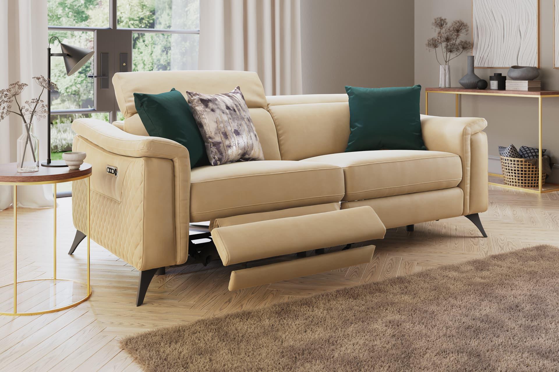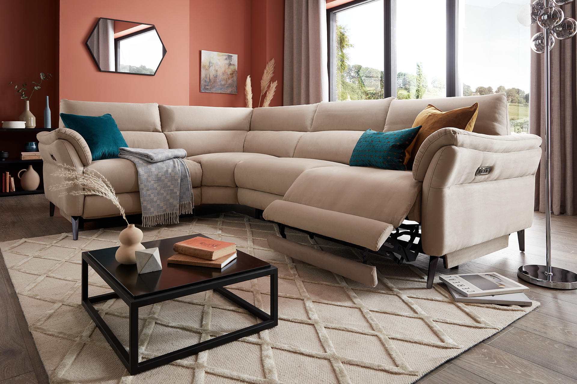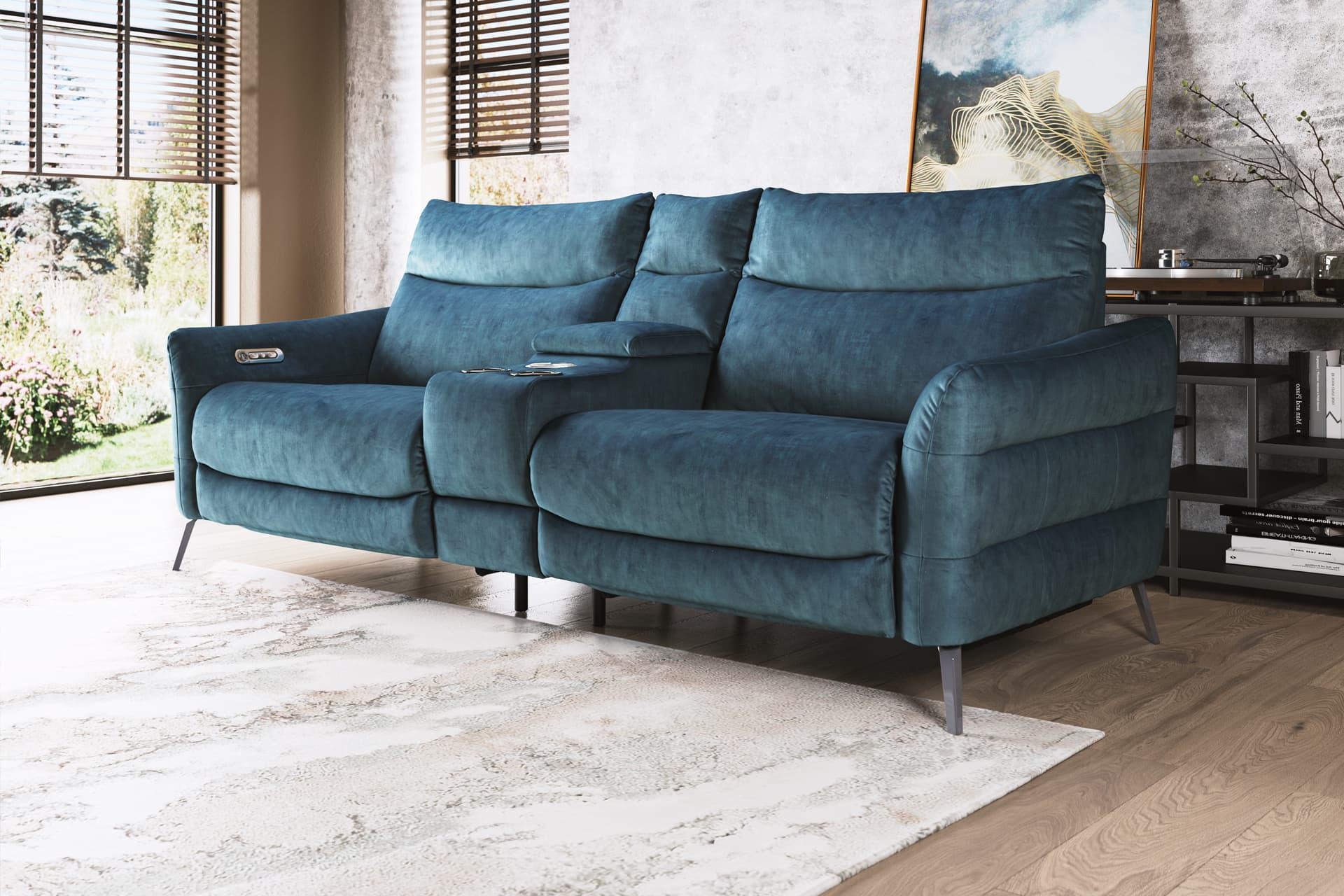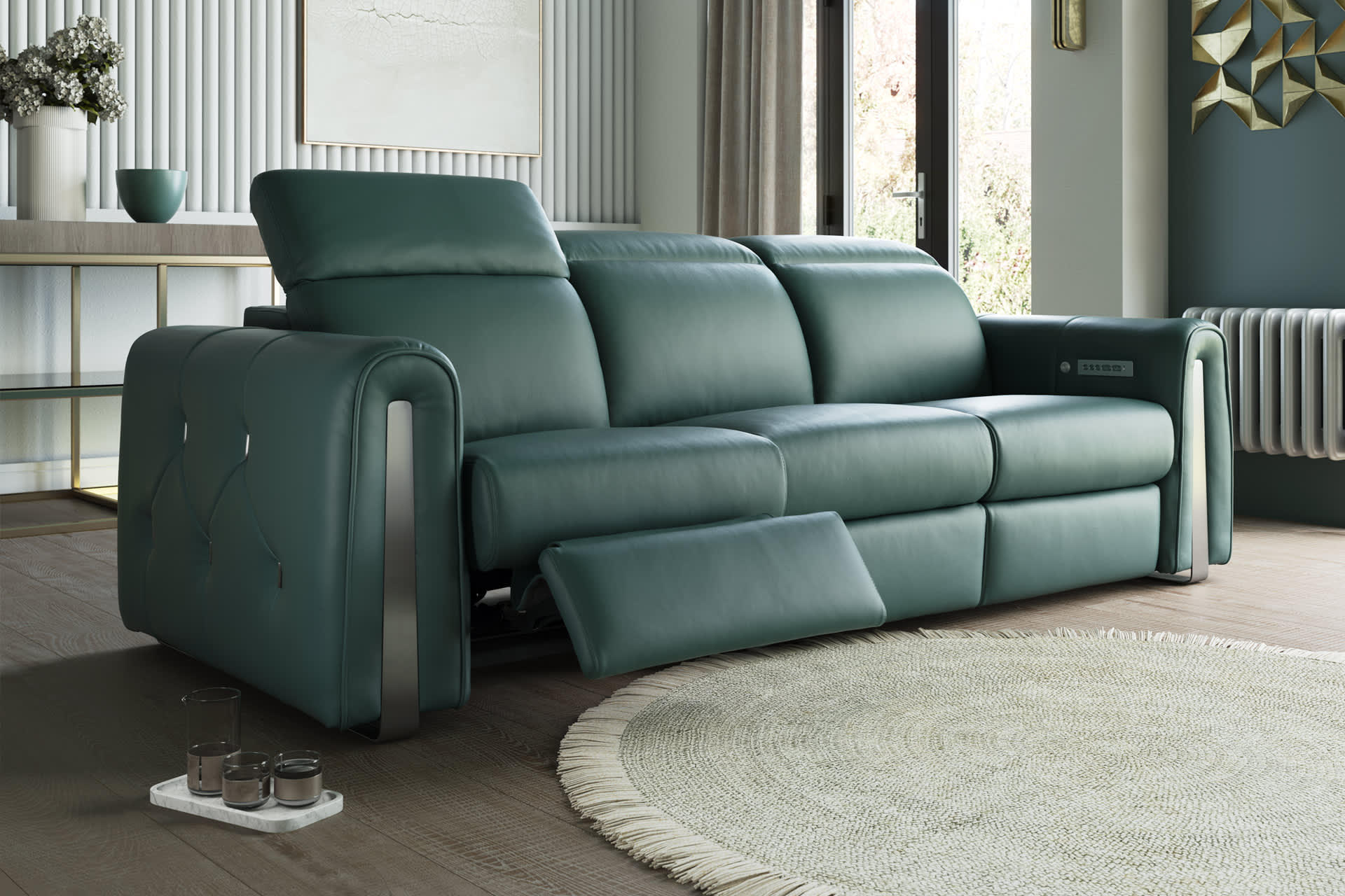 Made for tech-savvy sofa snugglers, our Renato sofa is designed with both comfort and style at heart. Perfect for post-work naps, weekend movie marathons and oh-so-cosy cuddles with your loved ones, it’s the perfect place to stretch out, relax and unwind, with a choice of warm leather or luxurious velvet upholstery options available. With high set feet and fluting along the arms, we’ve not been shy with the intricate design features that set this sofa apart - but effortless relaxation and innovation is what the Renato is all about. Available as a power recliner or static sofa, the Renato recliner lets you kick back at the perfect angle to suit your comfort, from upright all the way to almost horizontal - perfect for those cheeky Sunday snoozes. A handy console section is available on some of the sofa sizes and corner options, which comes with cooling cup holders, wireless charging points, USB-A and USB-C slots, a 3-pin plug socket for your laptop and a reading light. Integrated bluetooth speakers in the sofa allow you to play your music in your living room with ease; brimming with 21st century features, you’ll never have to leave your seat to stay connected on the Renato. Curl up and chill out on pocket sprung seats topped with a layer of foam and a Dacron fibre wrap, which offer the ultimate in support and cosy comfort. Cloud-like fibre filled back cushions combine with arms filled with foam wrapped in Dacron fibre to cocoon you in comfort as you unwind. Serpentine springs, aligned with silent wire, sit under the seat cushions and distribute weight evenly across the sofa, so you’ll find it easy to keep the Renato looking great. Find a shape, size and shade to suit your home, with a choice of sofa sizes, chaise, chairs and footstools in the range. Choose from a selection of fabric and leather colours, with shades from cream to green available.The Renato is exclusively designed, expertly handcrafted and comes with a 20 year structural guarantee included. Sofology - Feel at home on a sofa you love.