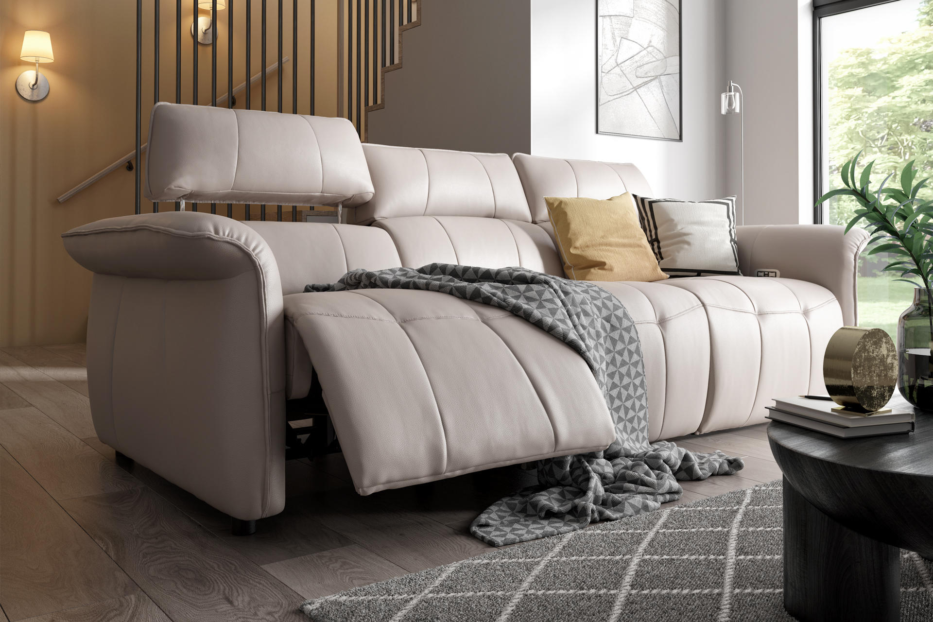 Stylish and comfortable the Marvella is an elegant sofa with a sweeping low back design. Available in either supple natural leather or luxurious hardwearing Luxe Plus fabric in a range of shades the Marvella promises relaxing comfort day after day. Designed to offer a sleek urban look with touches of luxury the Marvella features seats accented with bold stitching lines and is finished with stunning quilted detailing on the sides of the arms. Sitting on unique metal feet that elevate the sofa off the floor for a modern look the Marvella is an eye-catching sofa that’s contemporary and comfy in equal measure.The cosy and supportive seats feature a sprung core interior with a layer of foam and a Dacron wrap providing complete relaxation as you sit down and unwind. The sweeping low back cushions feature foam wrapped in Dacron fibre for added comfort. Available as a power recliner you can relax at almost any angle at the touch of a button even when placed just 10cm from a wall. Adjustable headrests allow you to increase the level of support on your neck without having to fully recline and handy USB charging ports are included so you can stay charged without leaving your seat. The Marvella is available with a console table featuring a smart LED reading light so you have a place for your drinks snacks or magazines within easy reach.Style your space with a choice of sofa sizes corner configurations chairs and footstools to choose from. Opt for the beautiful and cosy swivel chair and add extra eye-catching style to your living room. The Marvella is exclusively designed expertly handcrafted and comes with a 20 year structural guarantee included.Sofology - Feel at home on a sofa you love.