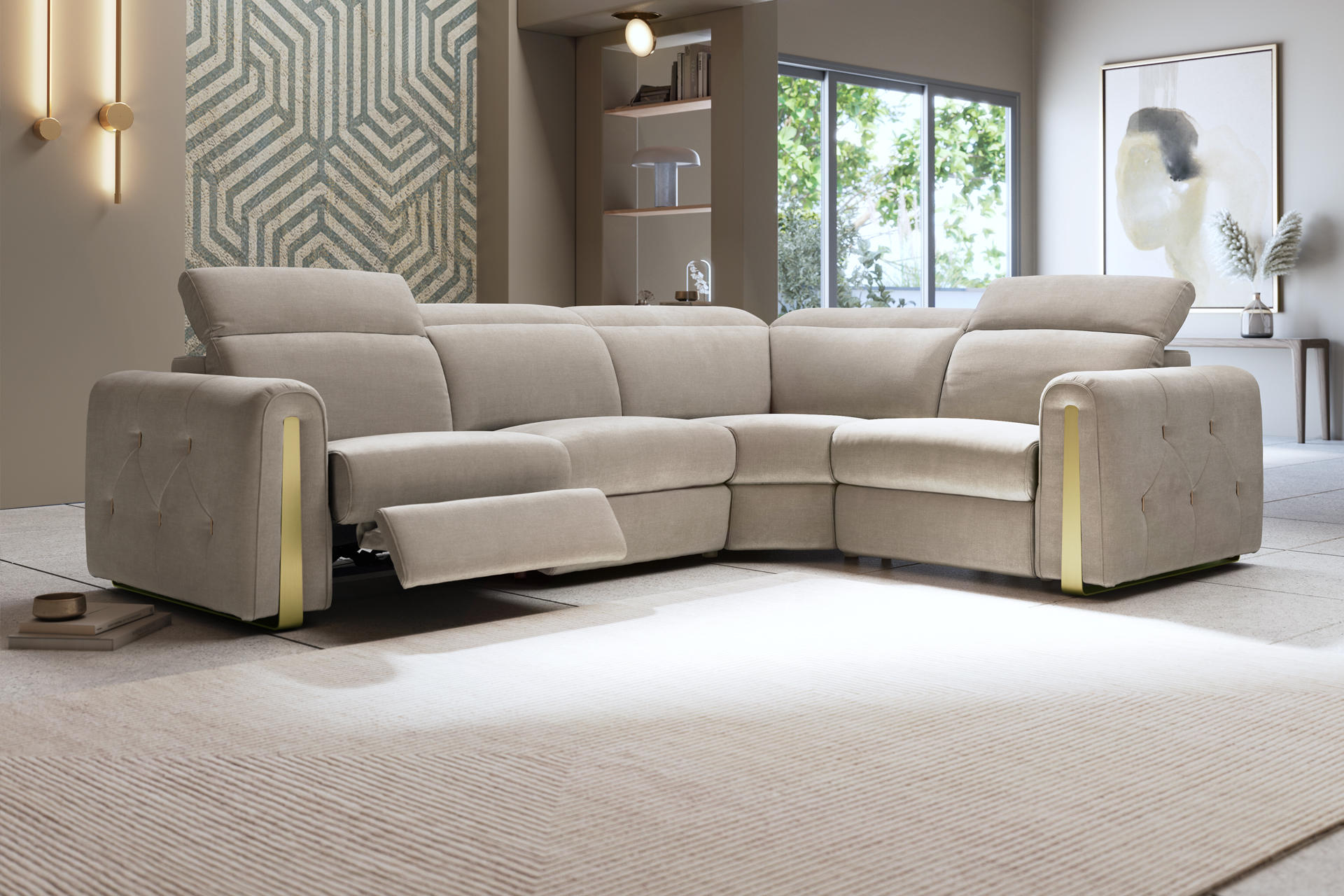 Go for glam or opt for understated with our beautiful Kingsbridge sofa. Versatile and cosy, you can dress this range as much or as little as you like to achieve a dream look and feel you’ll enjoy for years to come. Kick back and relax like royalty, with a choice of leather or fabric available in the range. Functional without compromising on style, the Kingsbridge is an intricately detailed range that focuses on the little things. The arms are finished with an inlaid metal trim that runs through to the feet, while metal studs accent the diamond tufted stitching on the sides of the sofa, bringing a mix of contemporary style and classic sofa design together. Opt for trusty embossed leather for a cosy yet durable finish on the sofa. Prefer a fabric feel? The Kingsbridge is available in both relaxed chenille and lifestyle flecked fabric, that’s a more durable option designed to withstand almost all that life throws at it - opt for gold or gunmetal feet and trim to complete the look.Recline at your leisure on the Kingsbridge, with power recliner options available to help you enjoy post-work snoozes in style. This innovative recliner function allows you to choose an angle that suits you, from upright through to almost horizontal, and save the position with memory buttons so you can return to it with ease. The best bit? You can stay charged as you relax, with USB charging ports included on the power recliner. Stay seated for longer and choose the optional console table brimming with mod cons to complete your comfort. Featuring handy cup holders, extra storage space, a wireless charger and 3-pin power plugs, it will transform your sofa into a hub of relaxation - perfect for working from home or enjoying the latest blockbusters. Want to stay toasty? Opt for the heated seat option available in the range. Sit back and get comfy on seats featuring a pocket sprung core, topped with foam wrapped in Dacron fibre, and enjoy unrivalled comfort and support on the Kingsbridge. Back and arm cushions filled with foam and Dacron fibre add to the cosy, supportive feel - perfect for sinking into after a busy day. Serpentine springs, aligned with silent wire, help with maintenance, sitting under the seat cushions to evenly distribute weight across the sofa.Create your own cosy haven with a choice of sofa sizes, corner configurations, swivel chair, loveseat and footstools available in the range. The Kingsbridge is exclusively designed, expertly handcrafted and comes with a 20 year structural guarantee included. Sofology - Feel at home on a sofa you love.