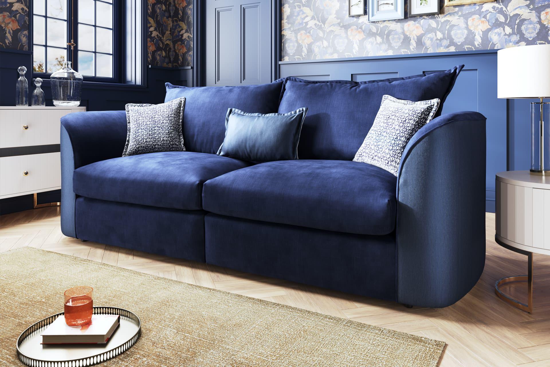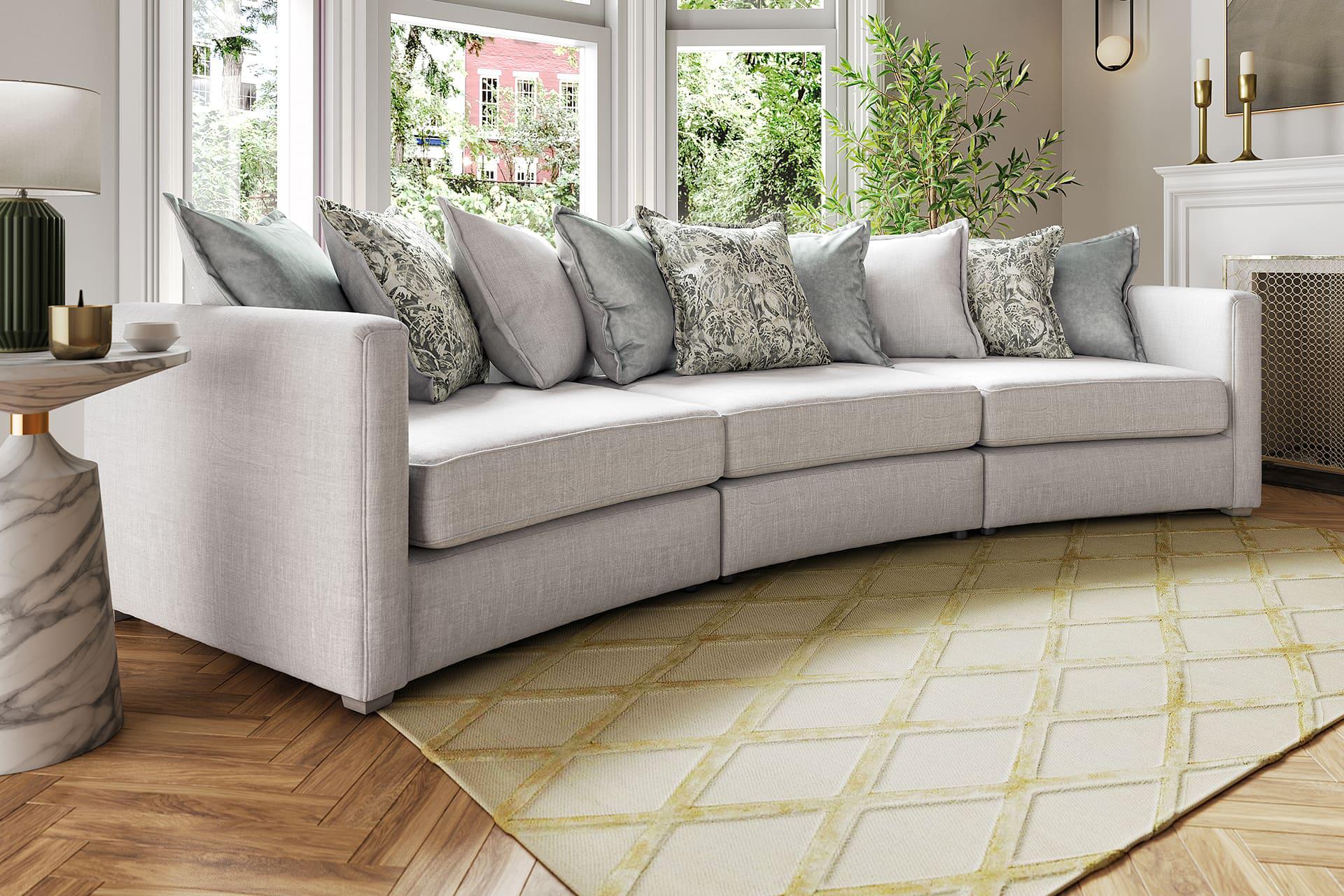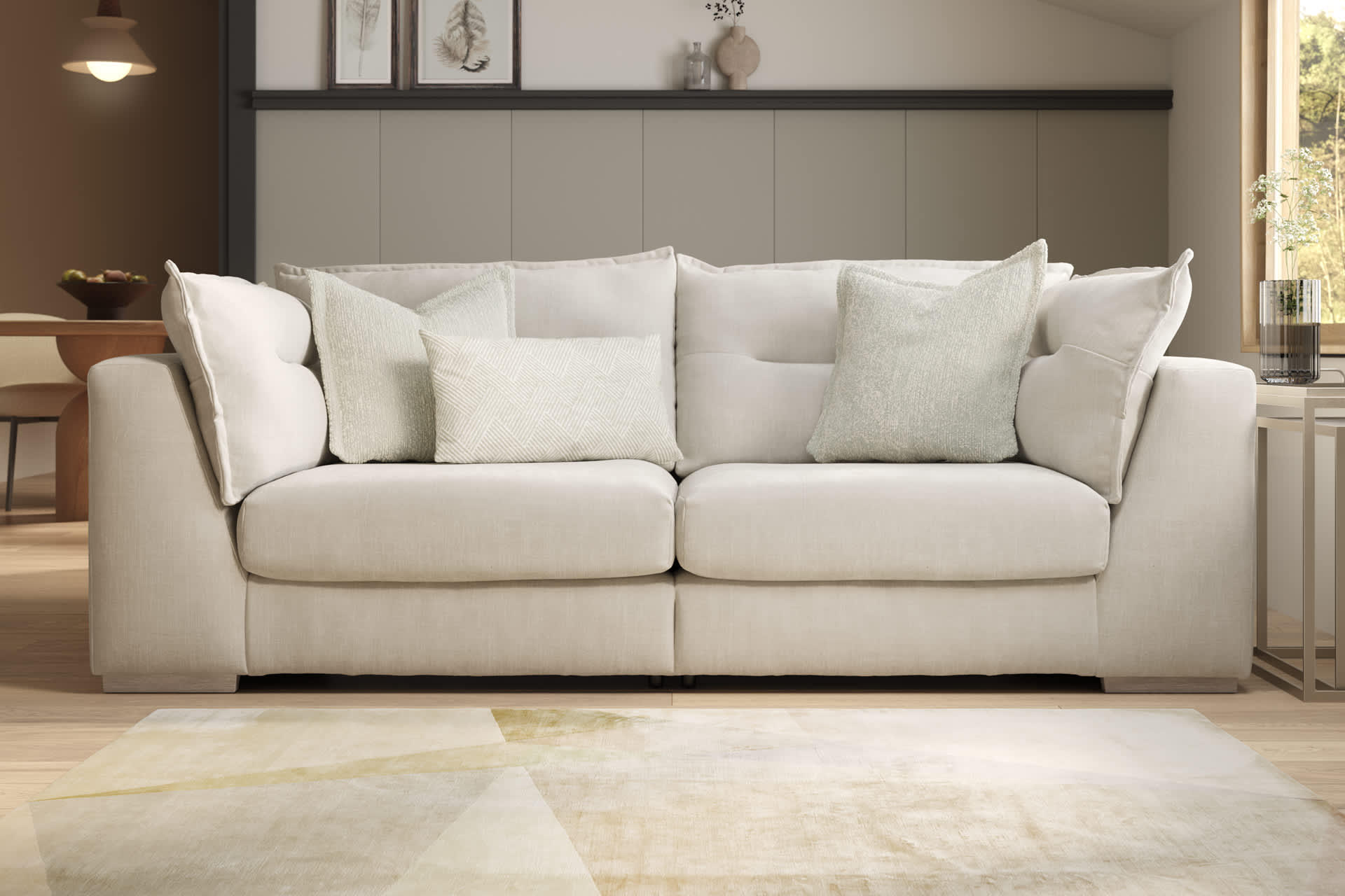 Kick back and relax on our curvaceous Como sofa. Designed to offer unrivalled style and comfort this range is lovingly handcrafted from soft tactile chenille fabric in a selection of delicious shades from midnight blue to latte beige so you can find a colour that fits your interior style.The soft sweeping silhouette gives this range an open and inviting feel whilst cradling you as you sit down and unwind. The luxurious brushed chenille fabric option is available with a contrast or plain outer fabric on the arms that features a metallic ribbed effect giving this sofa a unique look and feel you’ll love to have in your living room. Both the full back and pillow back cushion options feature an on-trend Oxford-style border and the sculpted arms have intricate piping detail that runs from the front to the back of the sofa and textured velvet scatter cushions are included to add extra style and comfort to your space.Enjoy sumptuous comfort on the Como with deep seats featuring a thick base of resilient foam topped with a cosy layer of soft fibre offering the perfect balance of comfort and support. Serpentine springs aligned with silent wire support the seats and help with maintenance by distributing weight evenly across the sofa. Choose a look and feel to suit you with a choice of full back or pillow back cushion options to suit your taste. Opt for the fibre full back cushions for a more traditional look or take your comfort to the next level with the feather-filled pillow back option. Choose a shape and size that works for your space with a choice of sofa sizes chairs and footstools available in the range. The Como is exclusively designed expertly handcrafted and guaranteed for 20 years.Sofology - Feel at home on a sofa you love.