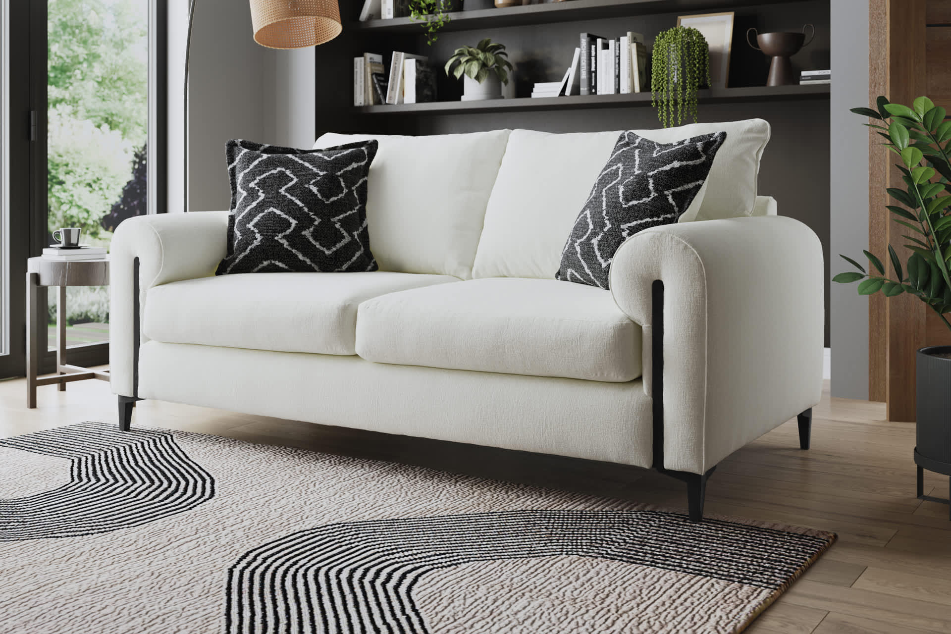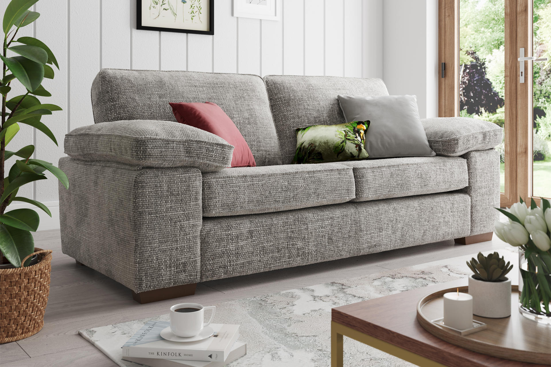 A unique take on a classic design, our Porter sofa will give your mood a lift every time you take your seat. Whether it’s curling up in front of the TV, or lounging with family and friends, the Porter is the perfect place to enjoy quiet relaxation on a sofa you love. Crafted from soft chenille fabric, you can have the Porter in a range of neutral shades, from mist grey to ivory cream. You can’t miss the eye-catching arm design on the Porter. A contemporary twist on a scroll arm, this sofa combines soft curves with bold straight lines, with an innovative inlaid arm detail that runs from the base and feet of the sofa. High set solid wood feet, available in a choice of walnut, grey or black shades, finish the look, supporting the sofa for a clean look. Enjoy that ‘post 9-5’ feeling on seats filled with foam wrapped in soft Dacron fibre, which offer cosy comfort and amazing support. Back cushions filled with cloud-like fibre mould to your shape as you relax - simply plump these cushions regularly to keep them at their best. Serpentine springs, aligned with silent wire, sit under the seat cushions for added support and to make looking after your sofa easier. Choose a size to suit your home, with a choice of sofa sizes, chairs and footstools available in the range. Feather filled plain and designer scatter cushions, finished with an Oxford border, are included in the range, so you can customise the look and feel of the sofa. The Porter is exclusively designed, expertly handcrafted and comes with a 20 year structural guarantee included. Sofology - Feel at home on a sofa you love.