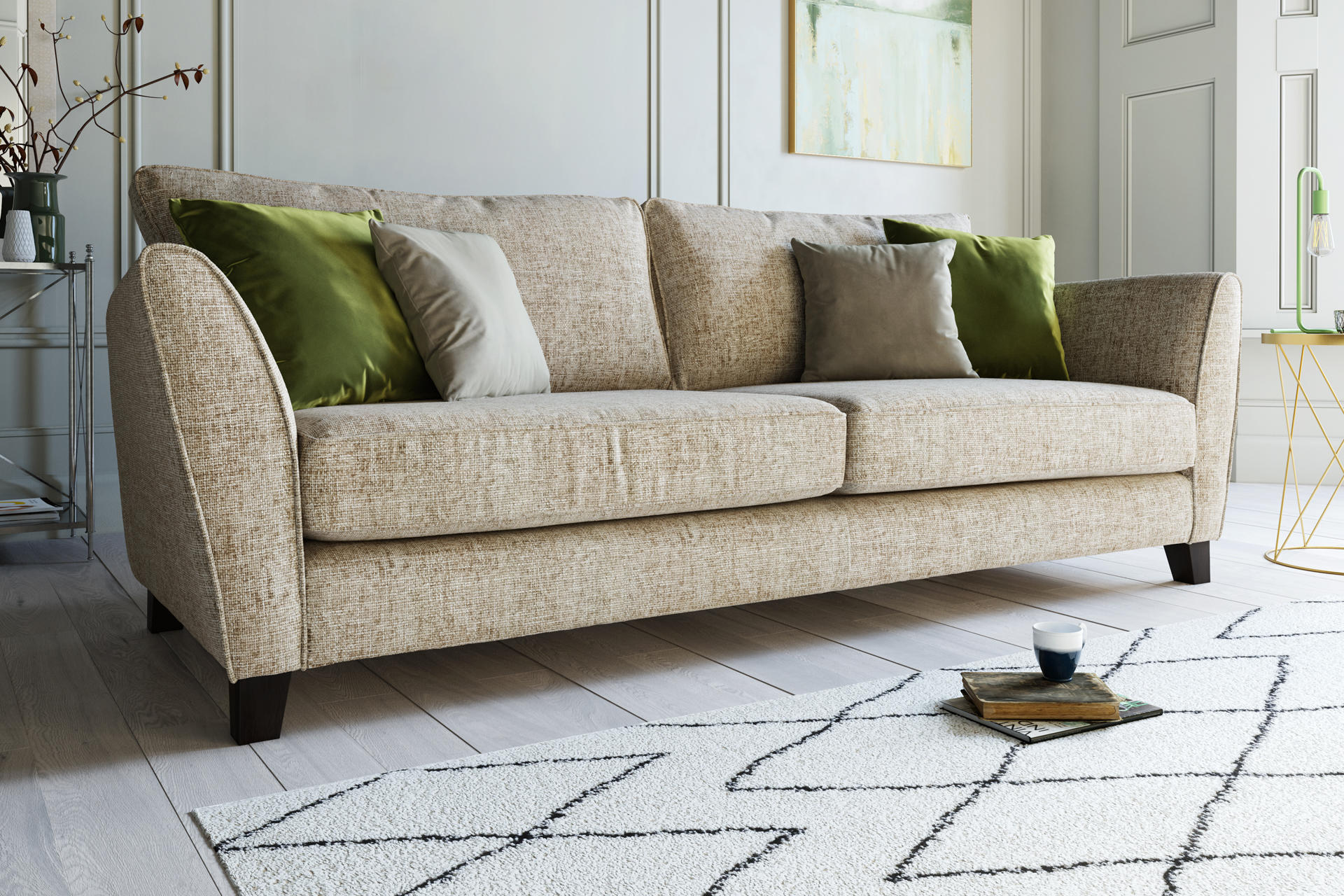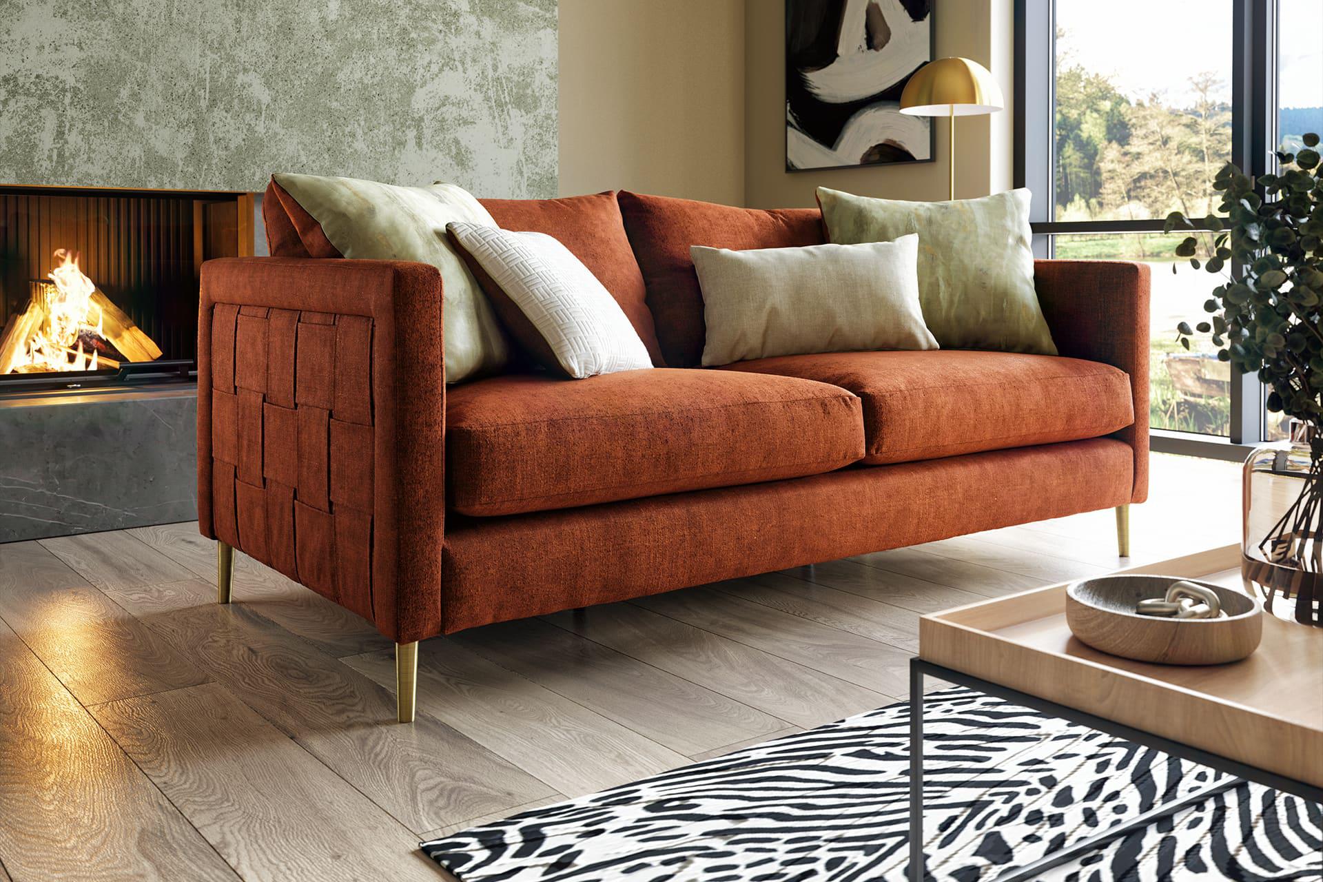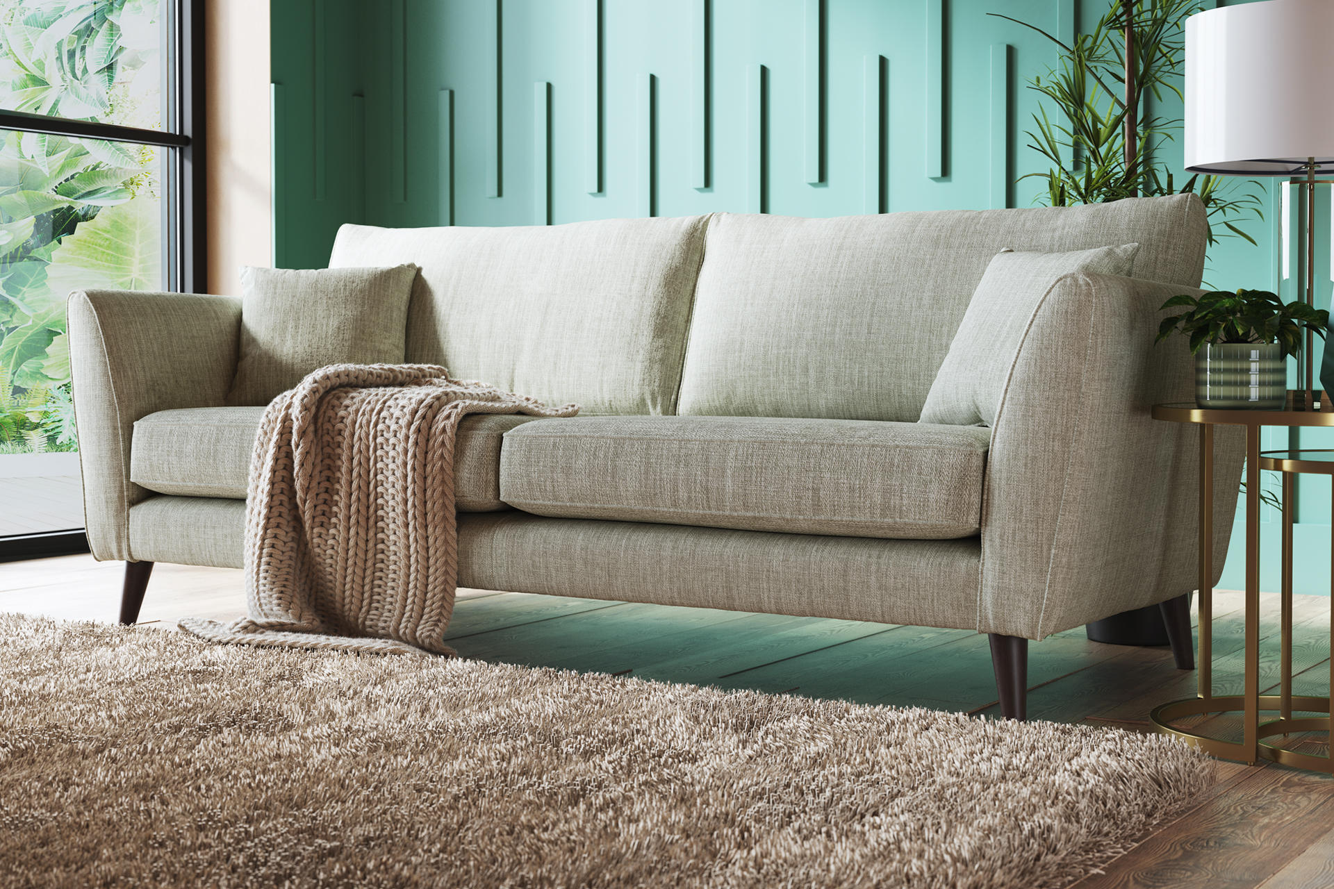 Minimalist modern and friendlier to the environment our Essence sofa offers eye-catching style and amazing comfort every time you take your seat. Part of the Sustainable Edit the Essence has sustainability at heart crafted from recyclable chenille fabric which includes recycled polyester this range is soft to the touch durable and is available in a range of shades from mocha brown to teal and grey.Designed with on-trend woven arm detailing the Essence is an eye-catching sofa you’ll love to have in your living room. Narrow arms offer a contemporary feel as well as more space for the whole family to relax with high set narrow feet supporting the sofa and completing the modern look available in a choice of gold or chrome shades. All wooden elements in the sofa are from FSC certified sources ensuring the wood comes only from sustainably grown trees.Sustainable seat fillings made from ethically sourced plant based materials offer amazing support and comfort that’s on par with foam and are recyclable at the end of their lifecycle. Serpentine springs aligned with silent wire support the seat cushions distributing weight evenly across the sofa. The Essence features fibre filled back cushions that mould to your shape as you relax and complementary scatter cushions are included with the range feather filled to complete the cosy feel. The seat and back cushions on the Essence are reversible helping with maintenance so you can keep your sofa looking clean and fresh.Style your space your way with a choice of sofa sizes corner configurations chair and footstools available in the range. Need extra storage space? Opt for the large or small storage footstool to help keep your living room tidy. The Essence is exclusively designed expertly handcrafted and guaranteed for 20 years. Sofology - Feel at home on a sofa you love.
