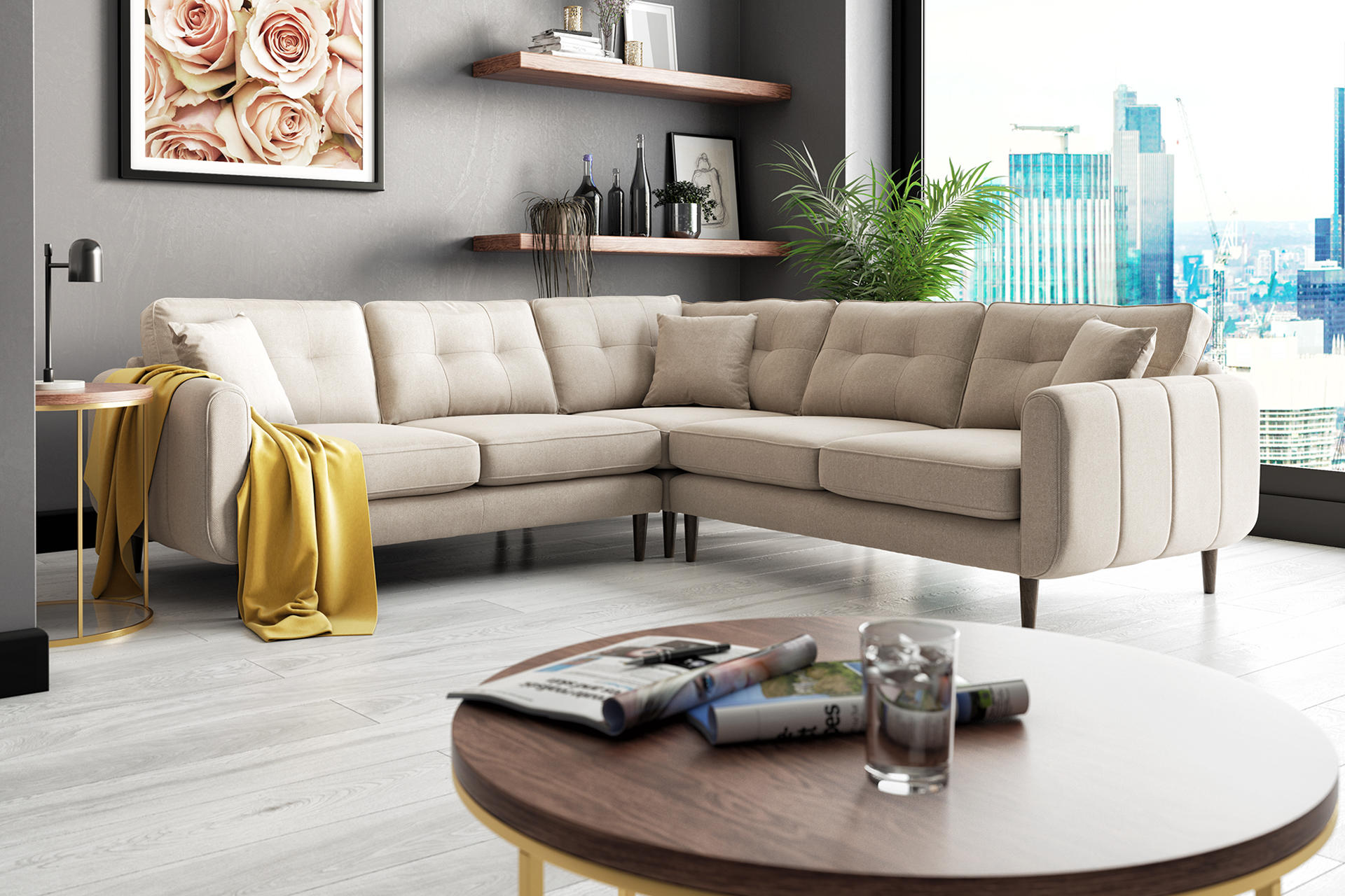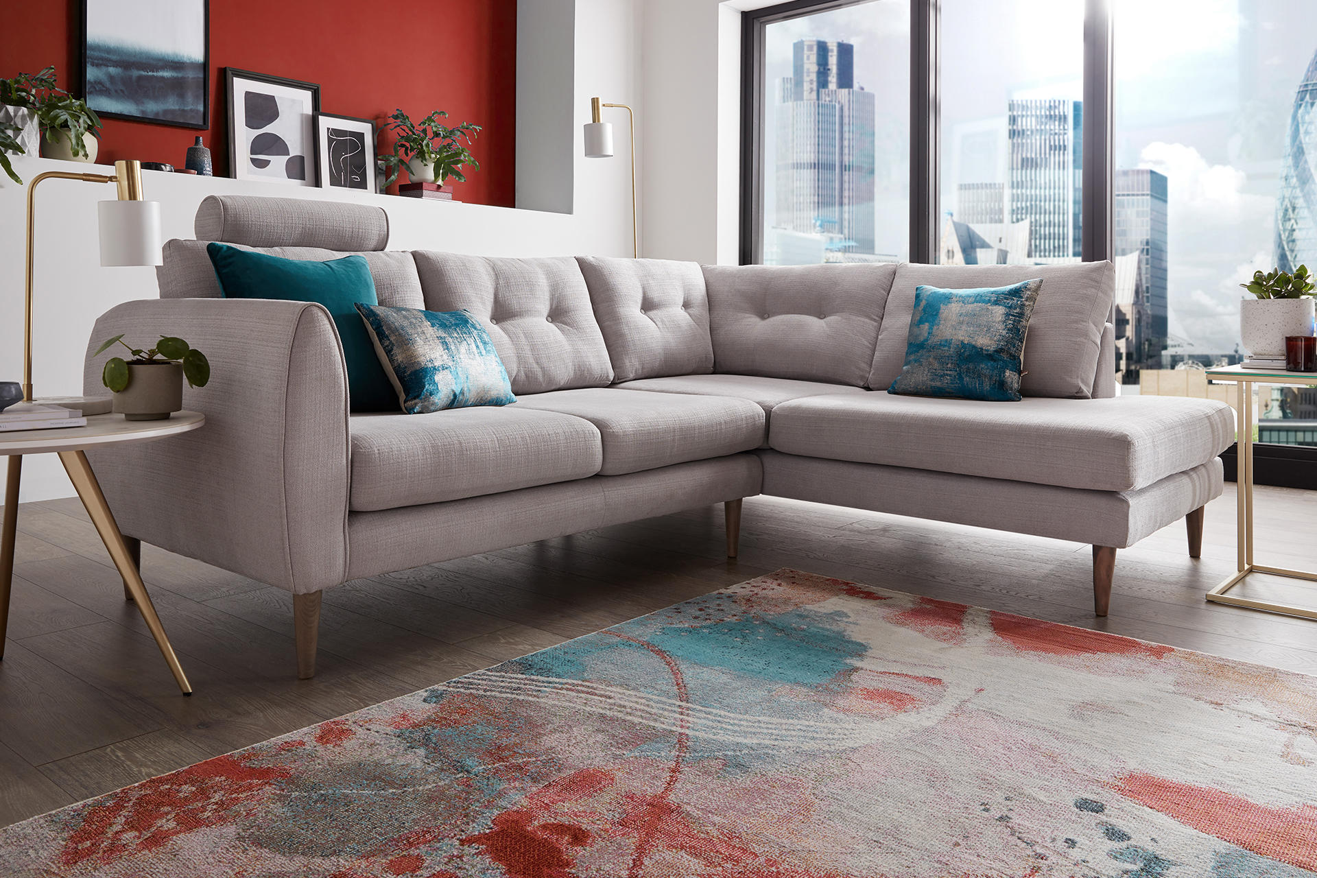 Simplicity never looked so good. Whether you have limited space in your living room or you just love clean lines and compact design the Finchley is big on style but on a smaller scale. Designed to be completely modular you can pick and choose pieces to create a shape and style that’s unique to you and perfect for your space. With such a clean simple silhouette colours and textures have the chance to shine. Handcrafted from a choice of warm woven mix luxurious velvet or our durable Pet Friendly fabric the Finchley is available in a sophisticated but bold colour palette so you can show off your individuality by mixing and matching shades. Despite its simplicity the Finchley doesn’t compromise on style. The curved narrow oval arms make the most of the seating space available whilst button detail on the back cushions adds a retro vibe. Prefer a metallic finish? The Finchley is available with a choice of solid wood or chrome finish feet. Fibre-filled scatter cushions and bolsters are included so you can style your sofa to suit you and you can choose the optional headrest for added comfort. With its simple design comes simple maintenance - the Finchley boasts cosy seat cushions filled with a durable foam core and Dacron fibre wrap. Keep your cushions looking great and feeling comfortable with frequent plumping. Combined with fibre filled backs you’ll enjoy figure-hugging relaxation you won’t want to leave.Available in a range of sofa sizes corner configurations chaise chairs and footstools the Finchley gives you more options to style your space. Why not create an oversized corner piece for the whole family or opt for a more compact shape if space is limited - the choice is yours.The Finchley is exclusively designed expertly handcrafted and guaranteed for 20 years.Sofology - Feel at home on a sofa you love.