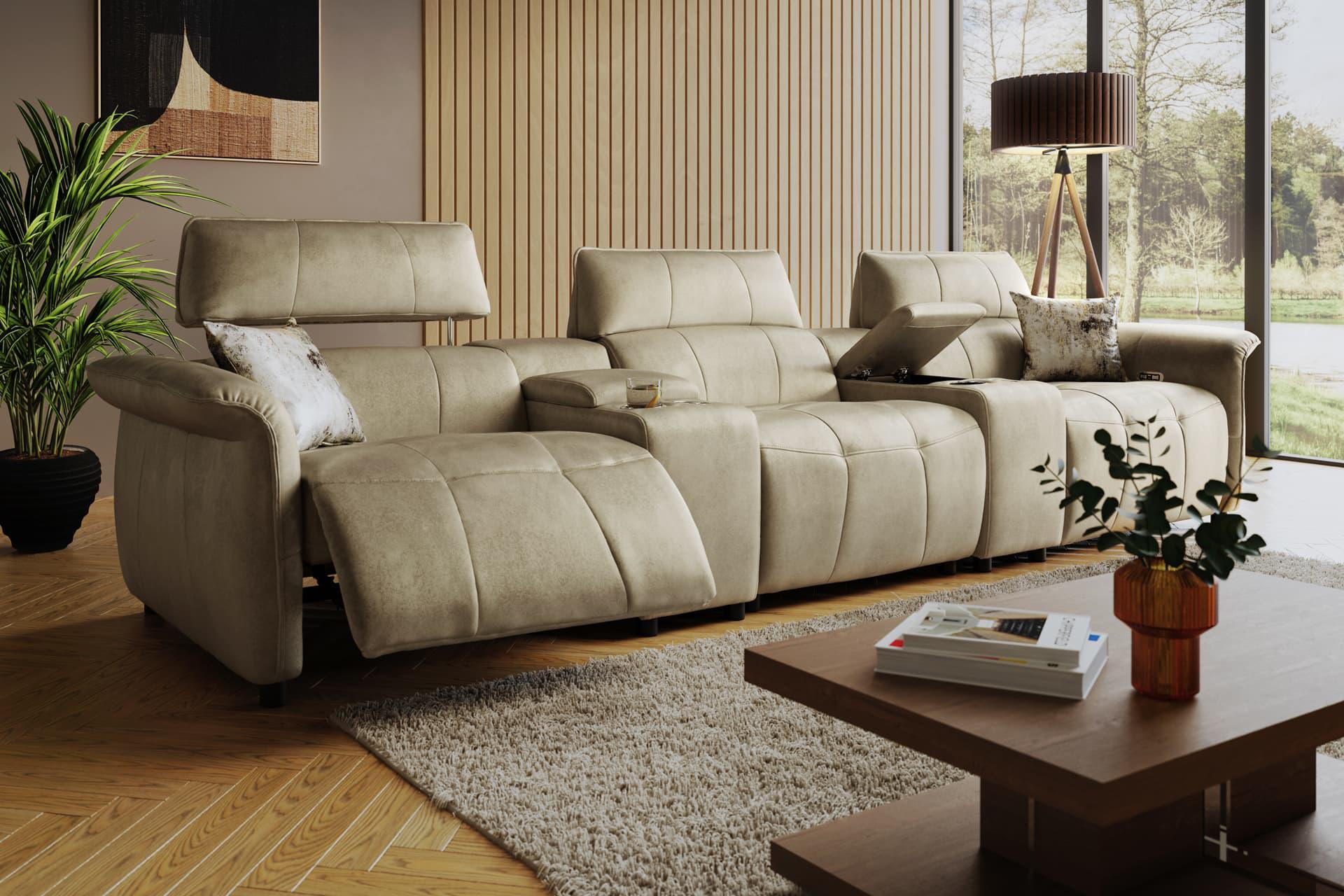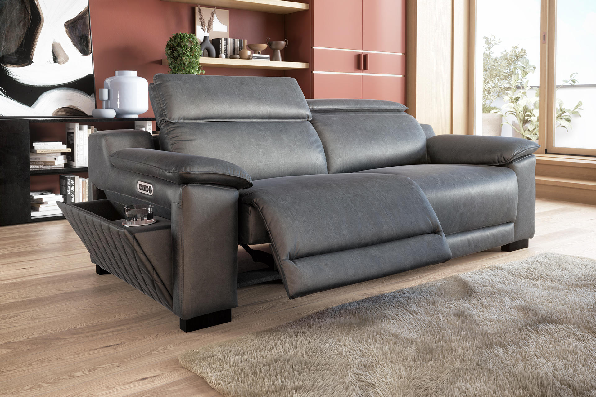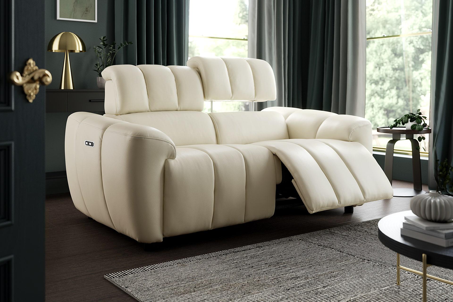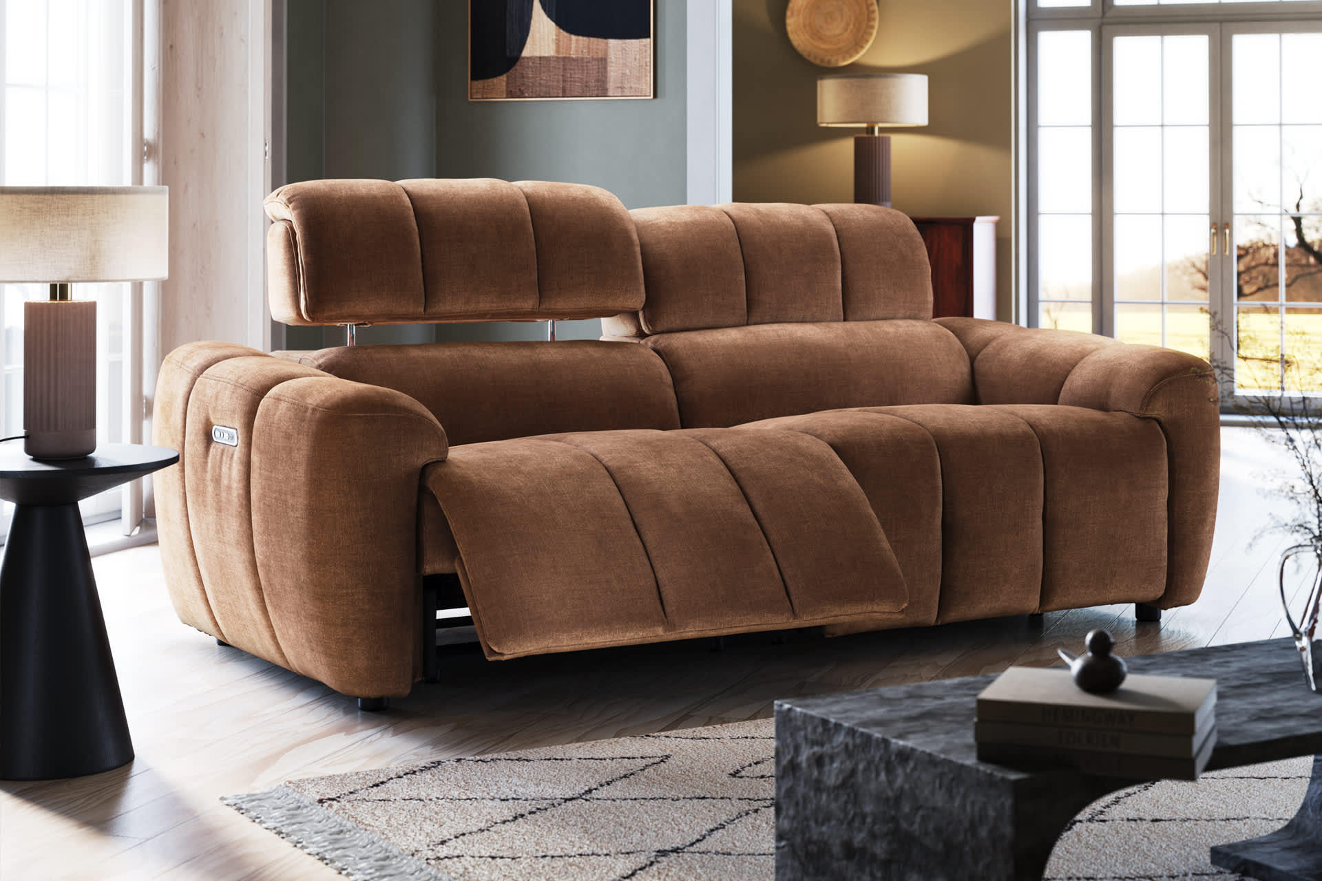 Designed to propel interior design into a tech savvy future our Ezra sofa is the perfect choice for those who love to make life that little bit easier. Available in recyclable fabric soft chenille or luxurious durable Luxe Plus fabric options - easy to clean Luxe Plus is a great choice for busy families. What’s more this range is also available in a choice of pigmented or semi-aniline leather that are hard wearing and feel amazing to relax against.Crafted with a low contemporary silhouette the Ezra doesn’t compromise on style. Sleek and modern this range is designed to sit off the floor and the sides of the sofa are accented with intricate quilting detail. Finished with high set angled metal feet the Ezra will be an eye-catching addition to your space.Truly innovative the Ezra is designed with features that take your comfort to the next level. Available as a power recliner this sofa lets you relax at an angle of your choice and features handy USB ports so you can stay in your seat as you charge your devices.The power headrests can be individually adjusted for amazing neck support and the static sofa option features adjustable ratchet headrests so you can enjoy countless hours watching TV in comfort.Choose the optional console section which offers extra storage space for drinks and magazines as well as an attachable touch activated reading light so you can stay completely relaxed as you lose yourself in a new book.Spacious and inviting the Ezra features innovative pocket sprung seats topped with foam wrapped in soft Dacron fibre so you can enjoy out-of-this-world comfort every time you take your seat. These cushions sit on solid steel serpentine springs aligned with silent wire which add durability by distributing weight evenly across the sofa. Sit back against soft supportive foam-filled back cushions which combine with thick arm cushions filled with foam and Dacron fibre to complete the cosy feel.Create a space you’ll love to relax in with a choice of sofa sizes corner configurations chairs and footstools available in the range. The Ezra is exclusively designed expertly handcrafted and guaranteed for 20 years.Sofology - Feel at home on a sofa you love.
