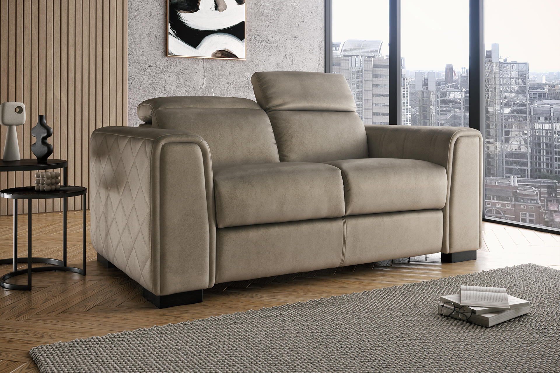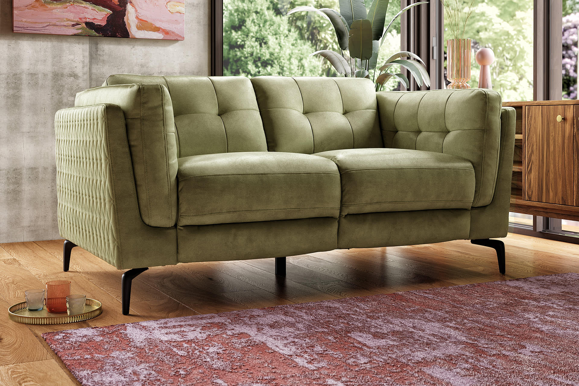 Recline and unwind at your leisure on our stunning Muse sofa. Designed to offer supportive comfort, this range is all about weekend lounging and evenings spent relaxing. Spacious yet cosy, this range offers plenty of space for quality family time. Intricately detailed, the Muse is a real head turner. From the beautiful button-finished pintuck stitching across the arms and back of the sofa, to the delicate quilting design on the outside of the sofa, the Muse is elegant and carefully crafted to combine elegance and practicality. Finished with high set metal feet in a black matt shade, the Muse is contemporary and cosy in equal measure. Expertly crafted from relaxed matt leather or luxurious, durable Luxe Plus fabric, the Muse offers plenty of opportunity to customise the look and feel of your sofa. Available in a range of leather or fabric shades, you can have this sofa in a tone to suit your home, from burnt orange to espresso brown. Choose your comfort level, with both static and recliner options available in the range. Relax at the touch of a button and put your feet up with the power recliner - for added support, an optional headrest can be added to the sofa so you can keep your neck supported as you relax. Pocket sprung seats filled with foam wrapped in Dacron fibre offer the ultimate level of support, with each pocket spring in the cushion distributing weight evenly across your cushion. Backs and arms filled with fibre and a Dacron fibre wrap, offering indulgent comfort you won’t want to leave. For added durability, serpentine springs aligned with silent wire sit under the seat cushions to help keep your cushions looking great. Customise your comfort, with a choice of sofa sizes, chairs and footstools available in the range. The Muse is exclusively designed, expertly handcrafted and comes with a 20 year structural guarantee included.Sofology - Feel at home on a sofa you love.