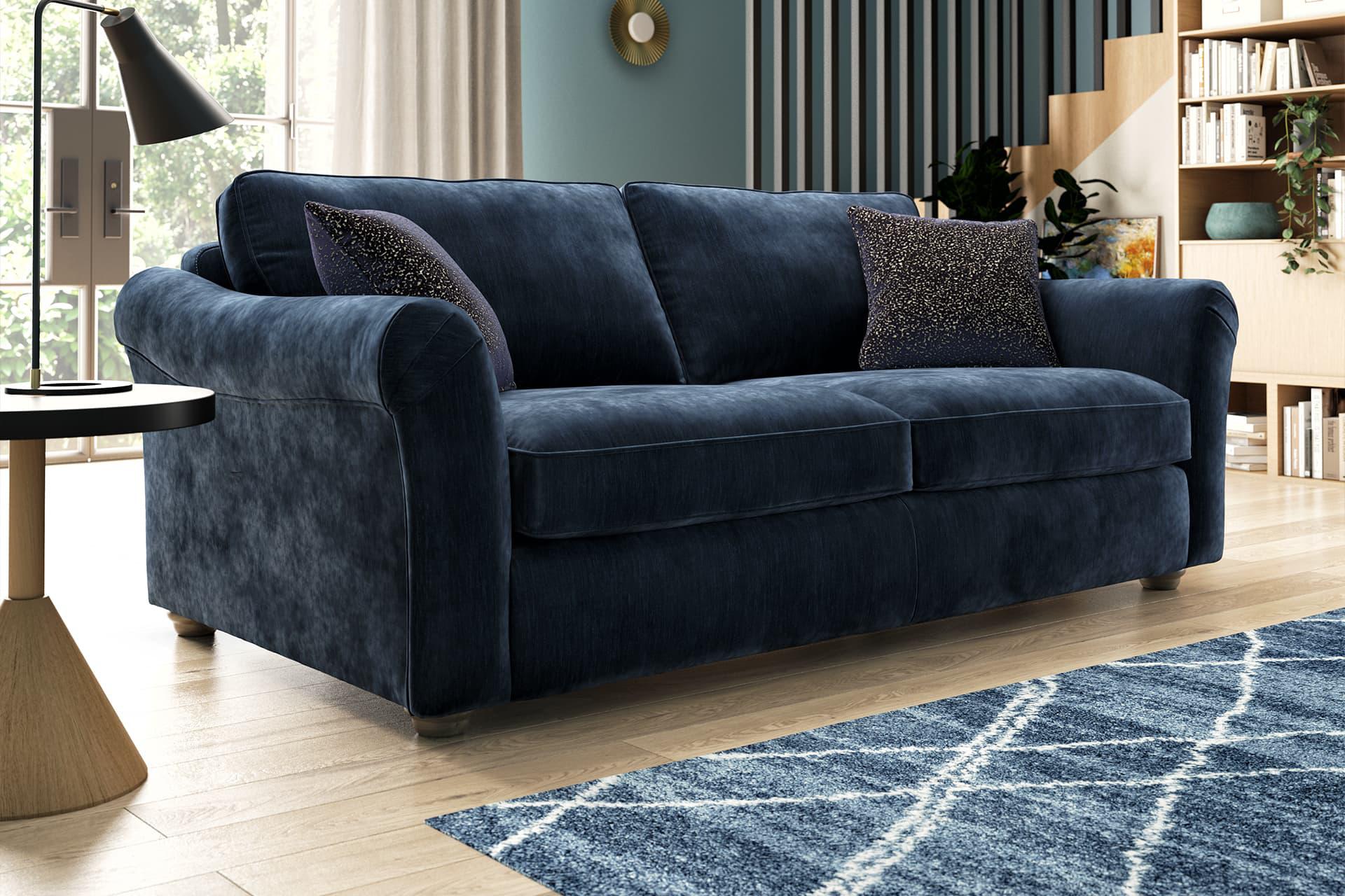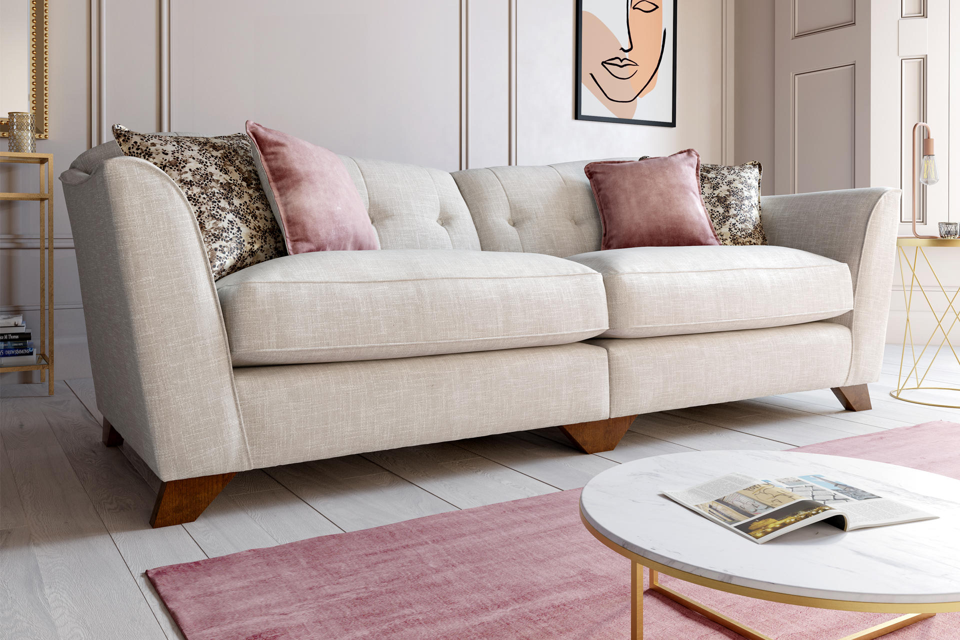 Sophisticated style and classic elegance designed for amazing warm cosy comfort. The Canterbury is traditionally handcrafted in the UK from soft velvet or warm durable woven mix fabric that feels incredible to relax against. The generous seat cushions are filled with a thick foam core wrapped in a layer of super soft Dacron fibre for a supported yet comfortable sit. The resilient foam at the centre works its magic helping your seat cushions hold their shape whilst the fibre provides added softness. Enjoy the support of high back cushions filled with super soft fibre hugging your shape as you curl up on an evening. Fibre filled scatter cushions included with the range complete the cosy feel and add a layer of style to the sofa.Both the seat and back cushions are reversible making cleaning and plumping your cushions easier along with giving your sofa twice the life. Turn and rotate your cushions and love your sofa for longer. The Canterbury is available in a choice of pretty fabrics including a selection of beautifully coloured designer accent fabrics that perfectly complement each other and add unique style to any room. A choice of solid wood feet in 3 colours means you can get the best match for your living room. Create a haven to come home to after a long day with a choice of sofa sizes left and right facing corner groups sofabeds chair accent chair and footstools to fit any room. The Canterbury is exclusively designed expertly handcrafted and guaranteed for 20 years.Sofology - Feel at home on a sofa you love.