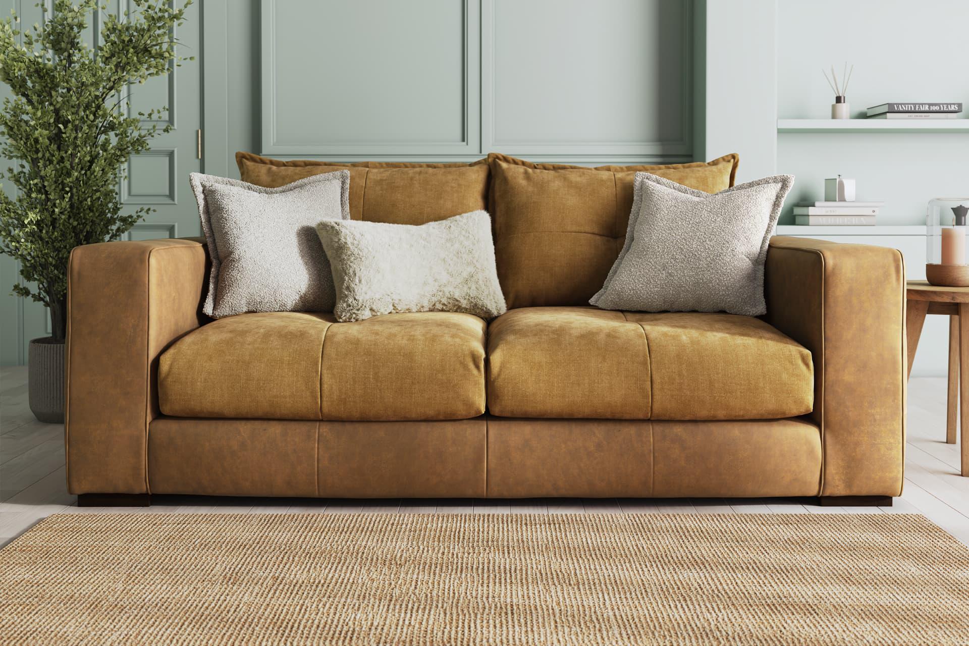 It’s the soft, indulgent comfort and beautiful, minimalist design that sets the Artisan sofa apart. Expertly crafted for those who love to spend extra time curled up on the sofa, it could be the final touch you need to make your house a home. Lovingly handcrafted from a choice of luxurious character leather, soft chenille, chunky bouclé or a combination of leather and fabric, you can choose the perfect look and feel to suit your home with the Artisan. Character leather is a more premium option that’s left untreated to allow the natural markings of the hide shine, so it needs a little extra care to keep it looking great. Find a shade of fabric or leather that compliments your interior style, with a choice of neutral tones from charcoal to tan available.The Artisan sits low to the floor on discreet wooden feet, available in a choice of walnut, black or grey ash shades for added versatility. Designed with subtle features like raised, piped stitching lines, Oxford-style borders on the back cushions and pintuck detailing on the sides, seats and back cushions, the Artisan doesn’t compromise on looks as it delivers unrivalled comfort. Deep, inviting seat cushions filled with foam wrapped in soft Dacron fibre offer amazing support and comfort you won’t want to leave. Serpentine springs, aligned with silent wire, sit under the seats for added durability. Sink into the fibre filled back cushions as you relax, and enjoy added comfort from the feather filled scatter cushions included in the range. These scatter cushions are available in bouclé fabric and faux fur depending on the upholstery you choose, allowing you to customise the look and feel of your sofa. Turn your living room into a relaxation haven, with a choice of sofa sizes, chairs and footstools available in the range. The Artisan is exclusively designed, expertly handcrafted and comes with a 20 year structural guarantee included. Sofology - Feel at home on a sofa you love.
