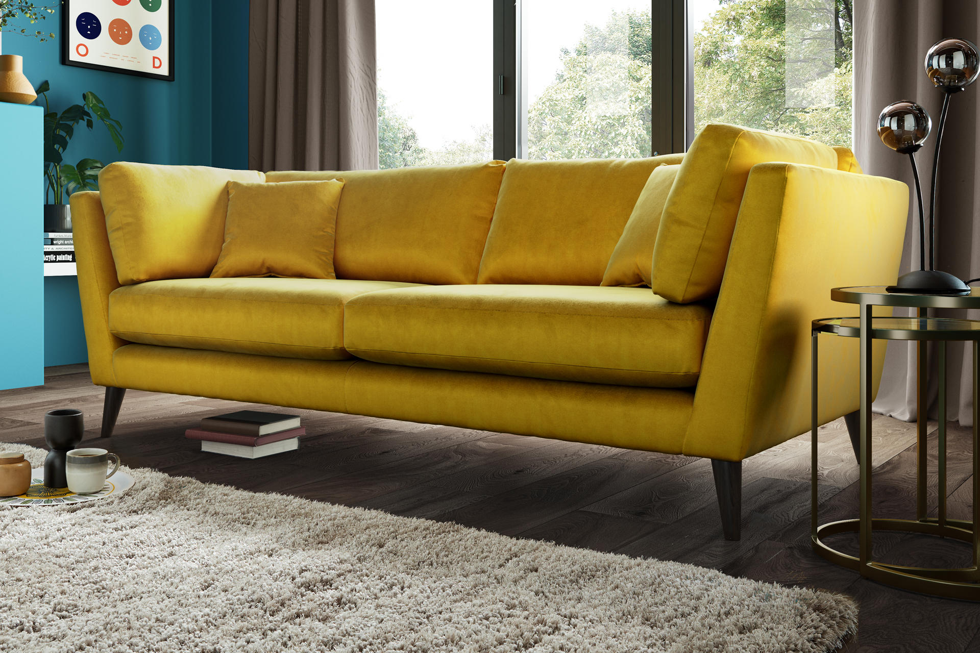 Designed to offer on-trend style and sublime comfort our Ivanna sofa is the perfect place to enjoy a relaxing evening at home. Expertly handcrafted from luxurious velvet fabric you can have the Ivanna in a colour to suit your decor with shades from emerald green to slate grey available.From the fluting across the sides and back to the inlaid arm detailing and high set metallic feet available in either brushed gold or silver the Ivanna makes relaxation look good. Fall in love with the sleek minimalist silhouette as you kick back and unwind against feather filled scatter cushions with an Oxford-style border available in patterned and block colour fabric.Enjoy the comfort of seat and back cushions filled with foam wrapped in soft Dacron fibre which offer the perfect balance of comfort and support. The seats are reversible so you can rotate them to keep them looking full and feeling comfortable for longer - plump these cushions regularly to keep them looking great.Create a space you’ll love to come home to with a choice of sofa sizes chaise chairs and footstools available. Crafted using FSC®-certified wood this range has a reduced impact on the environment.The Ivanna is exclusively designed expertly handcrafted and guaranteed for 20 years.Sofology - Feel at home on a sofa you love.