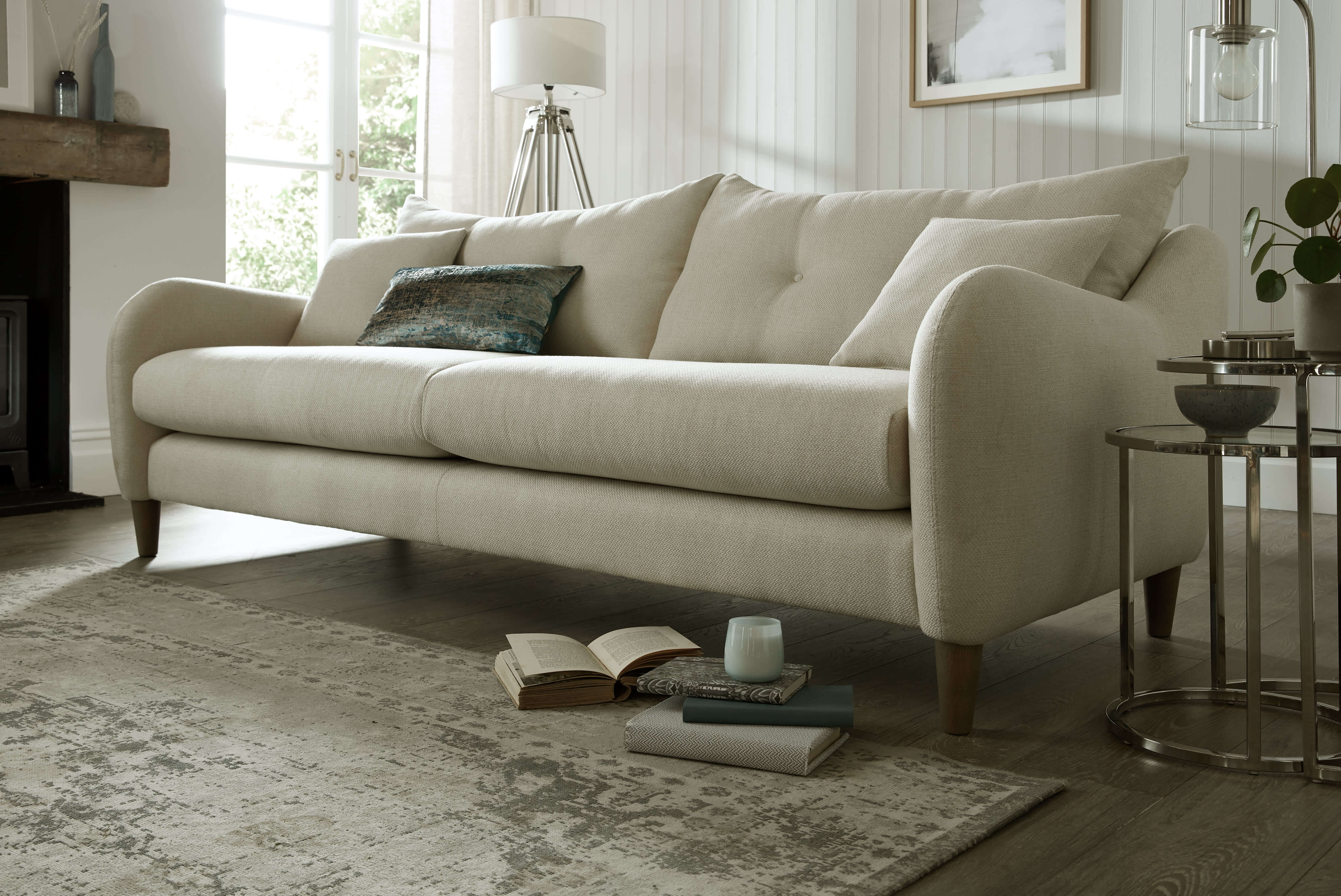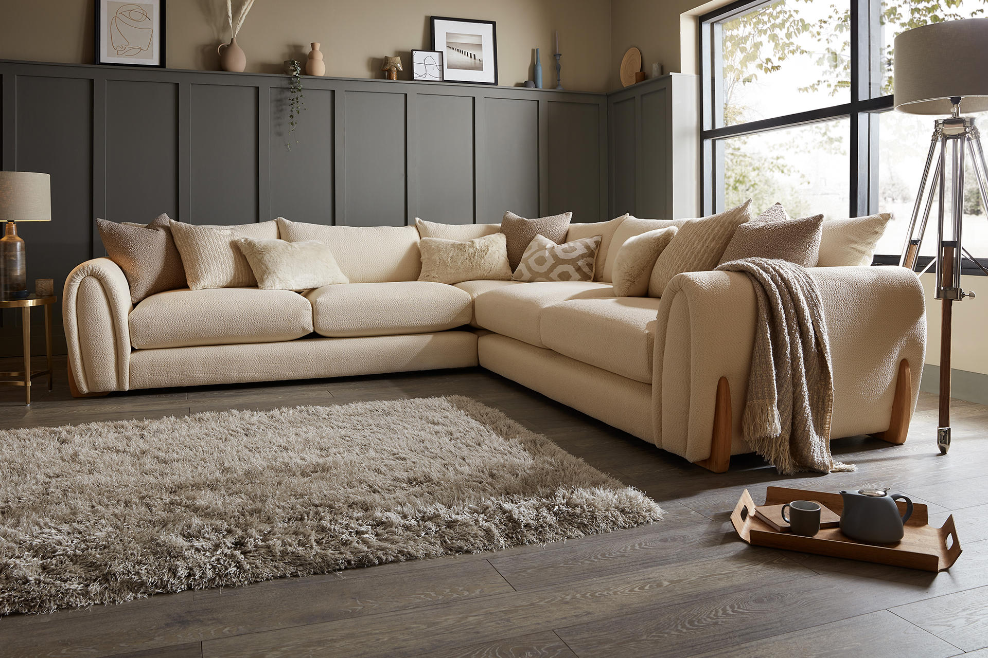 Enjoy blissful relaxation and stunning contemporary style on our Marble Arch sofa. Crafted from soft durable woven mix fabric you can have this range in a short pile option or in a more luxurious teddy bear-soft bouclé fabric with each available in a selection of muted neutral shades that will suit almost any decor scheme.Designed to combine straight lines and sumptuous curves the Marble Arch has a unique silhouette that will make it stand out in your space. The curvaceous arms feature inlaid detailing and the unique rounded wooden feet sit on the side of the sofa and add a striking contrast to the muted tones of the fabric. The feet come in either light or dark wood shades and discreet wooden feet are also available which sit hidden under the sofa.The seat cushions feature a supportive yet cosy combination of firm foam with a soft foam topper and feel amazing to curl up and relax on. The seat cushions are supported by solid steel serpentine springs aligned with silent wire which distribute weight evenly across the sofa so you don’t sink into the corners of the seats. Back cushions filled with a mix of feather and fibre complete the cosy feel moulding to your shape as you sit back and unwind.Grand in size the Marble Arch offers amazing comfort and relaxation and is available in a choice of sofa sizes corner configurations accent chair loveseat and footstools. The storage footstool gives you more space to keep your magazines spare cushions and throws neatly tidied away when needed.The Marble Arch is exclusively designed expertly handcrafted and guaranteed for 20 years.Sofology - Feel at home on a sofa you love.