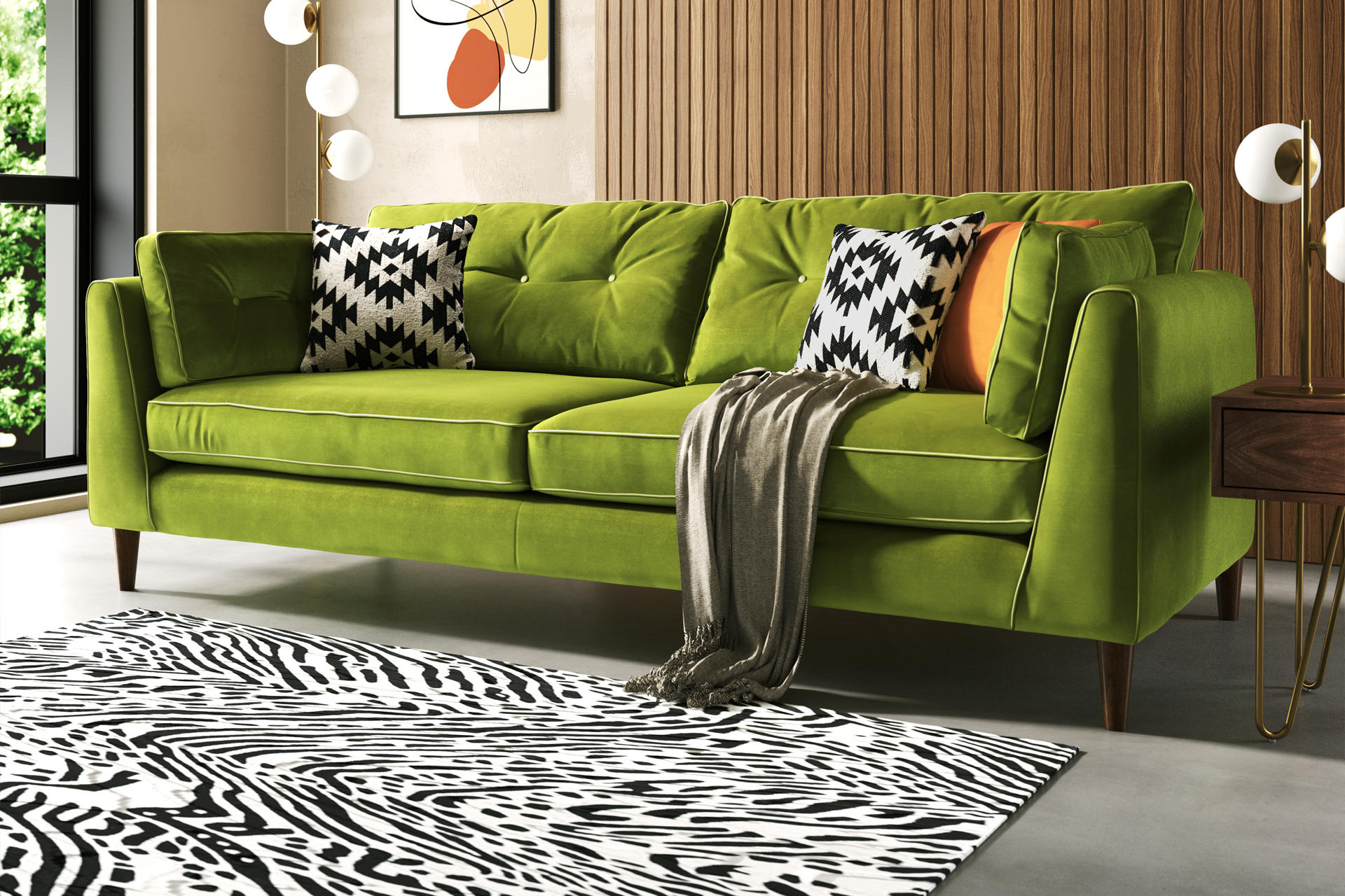 Exquisitely handmade in the UK from only the finest materials creating the ultimate combination of chic design and cosy comfort. Crafted from a choice of supple warm 100% natural leather soft plush velvet fabric or our Pet Friendly fabric option that’s scratch resistant easy to wipe clean and has the look and feel of soft velvet.Deep seats filled with resilient foam wrapped in super soft Dacron fibre mean comfort that you’ll sink into and cushions that won’t lose their shape - simply plump them after each use to keep them looking their best. The back is filled with cosy fibre providing comfort like a hug when you lean back for an evening of relaxation. Made to exacting standards with contrast piping and deep hand buttoned detail on the back that beautifully accentuates the sophisticated stylish design. Coordinating feather-filled scatter cushions are included adding an extra layer of cosy comfort.The Cricket comes in a choice of stunning jewel tones to help you find the perfect style to suit your room. It stands tall on high set solid wood legs that add height strength and perfectly accent the design. Create a stylish space with a wide range of sofa sizes left and right hand facing corner configurations sofabeds chairs loveseats & footstools to choose from. The Cricket is exclusively designed expertly handcrafted and guaranteed for 20 years.Sofology - Feel at home on a sofa you love.