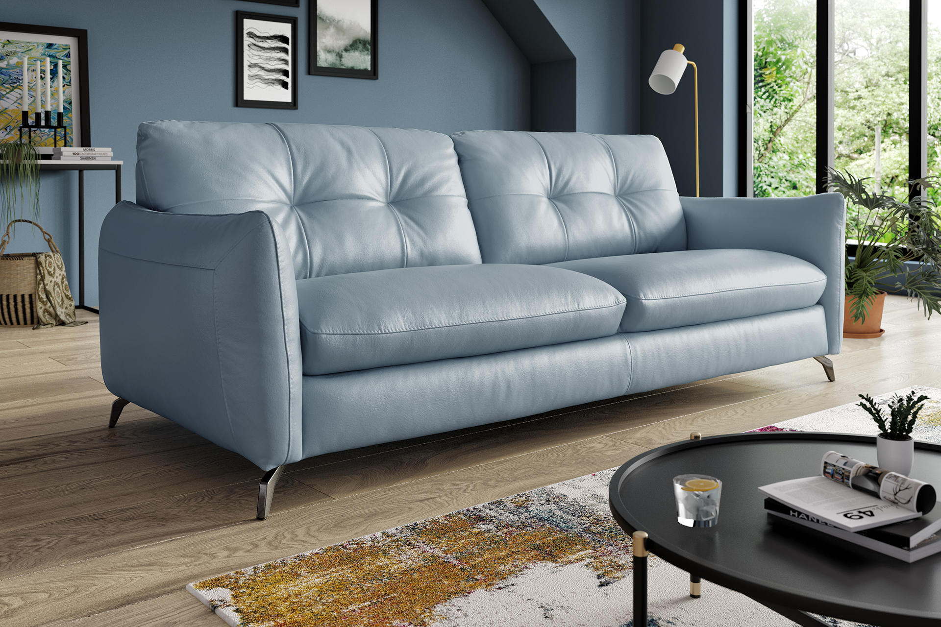 Styling your home with space saving furniture shouldn’t mean making less exciting choices. With retro style influences our compact Mimi sofa range offers fantastic seating space in a cool and sophisticated throwback design. Sitting low to the ground this sofa is sleek chic and the perfect size for studio apartment or city living. Choose the Mimi in ice blue leather for a striking look that's cool and contemporary or play it safe with a charcoal soft grey or classic brown shade - there's a wide range of colours to choose from in luxurious hardwearing Luxe Plus fabric or warm supple leather finishes. Whether you want your sofa to add that pop of colour or blend into your decor the Mimi can make your interior decorating dreams come true.The Mimi is all about eye-catching intricate details from the decorative saddle stitch along the arms to the raised seams across the seats. Fall in love with the stunning pintuck design on the back cushions and enjoy the little details that make this sofa so unique.Supportive seats featuring a sprung core foam and a Dacron fibre wrap provide a comfortable sit and cushions that are easy to look after. The seats are supported by serpentine springs aligned with silent wire ensuring you don’t sink into the corners of your sofa. This range is designed to maximise your space so why not mix and match items to make the most out of your room? The Mimi is exclusively designed expertly crafted and guaranteed for 20 years.Sofology - Feel at home on a sofa you love.